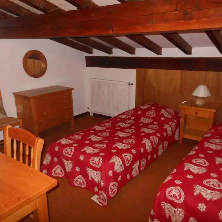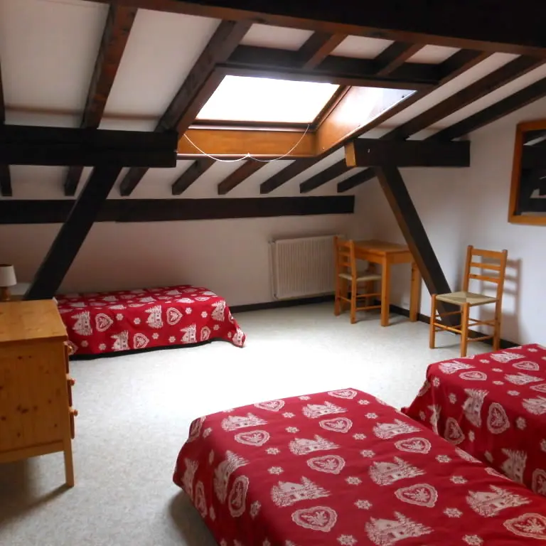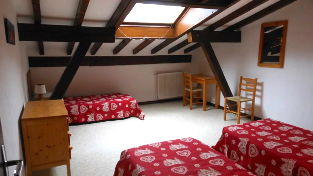 Duplex comportant : 1, en bas : Séjour double de 29m2 (où 1 lit simple) + Cuisine séparée + Salle de bains + WC + Entrée avec placard + Balcon (de 12m2), 2, en haut : Chambre où 2 lits simples + Chambre où 4 lits simples (dont 2 superposés conformes aux normes) + Chambre où 1 lit double, 1 lit simple, 1 lit bébé (pouvant être déplacé) + Salle de douche avec WC + Palier et couloir avec placards.