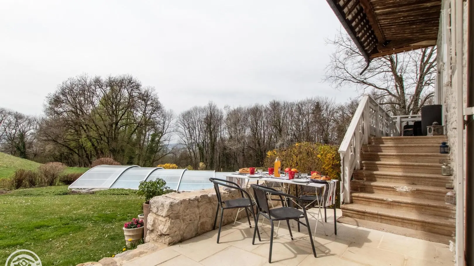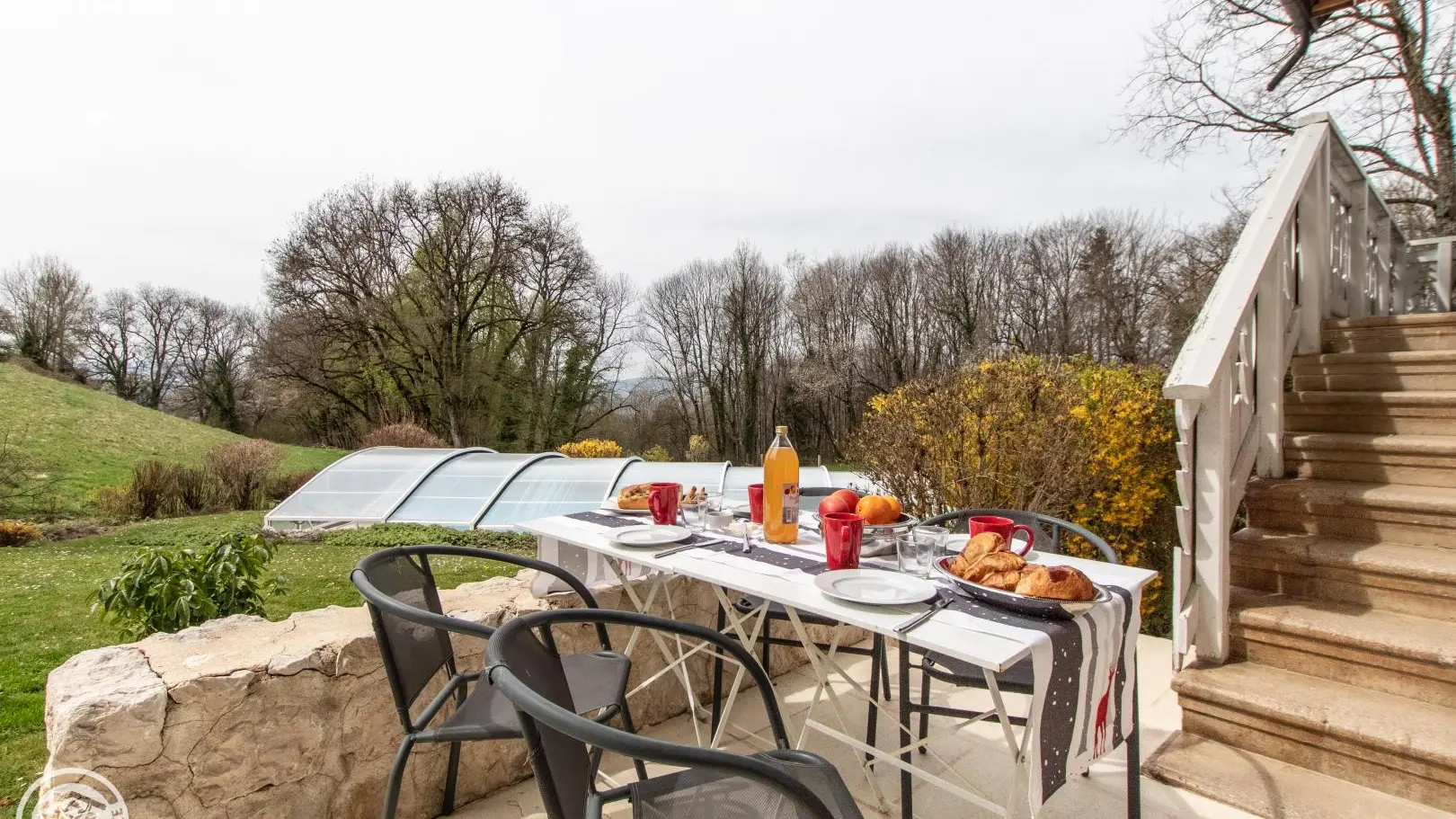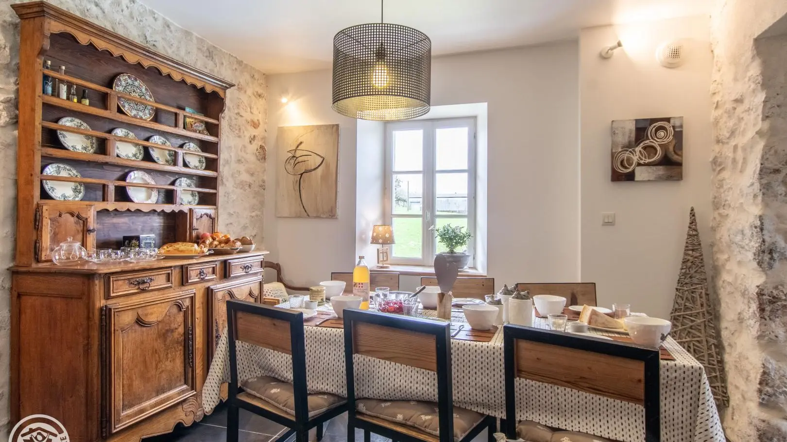 Salle à manger pour le petit-déjeuners, petit salon avec cheminée. Terrain commun avec piscine, mobilier de jardin et table extérieure sur terrasse. Spa (10€/heure/personne) et espace détente/bien-être avec services possibles sur réservation. Table d'hôtes les lundis, mercredis et vendredis. Réservations auprès des propriétaires.