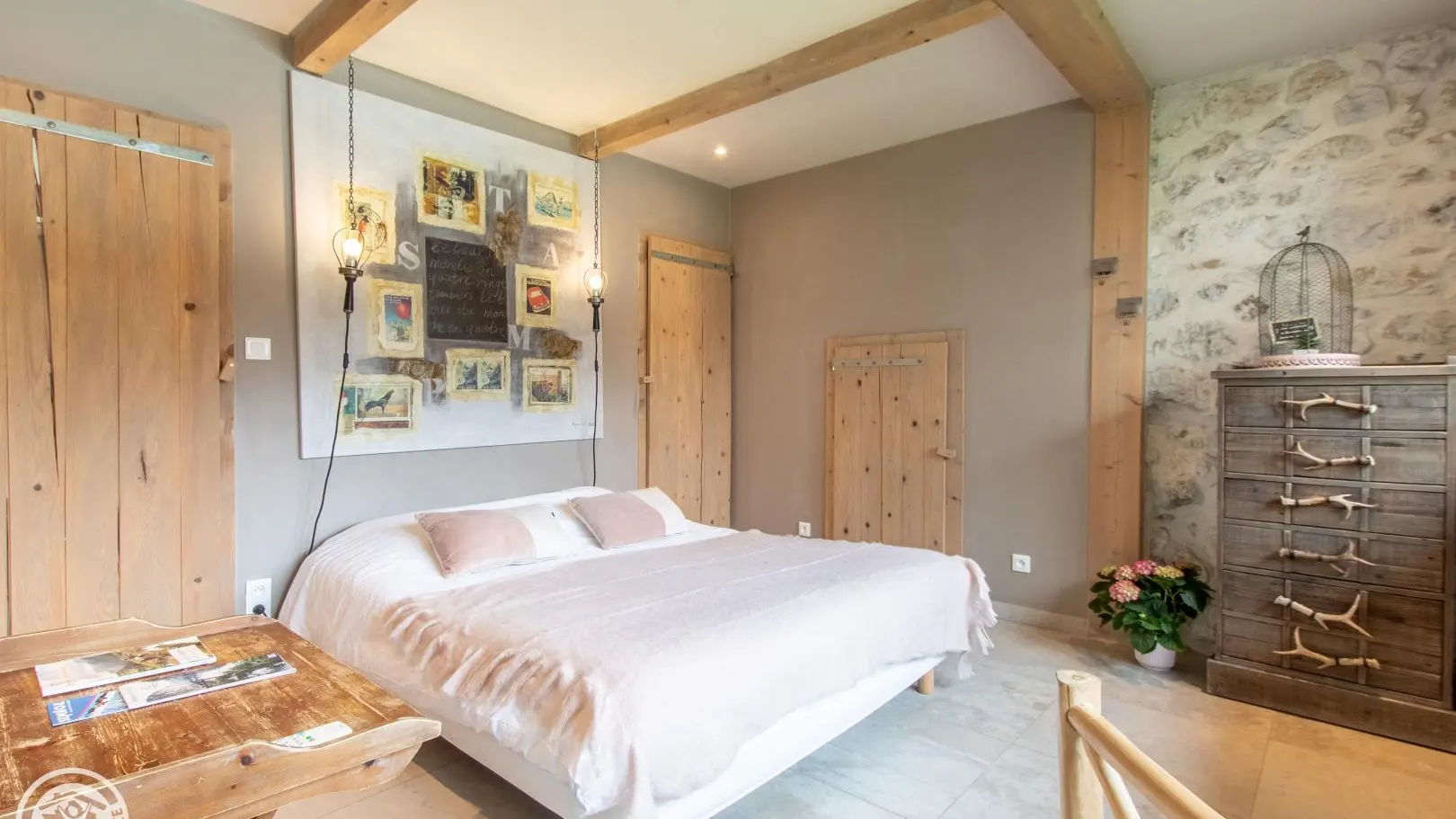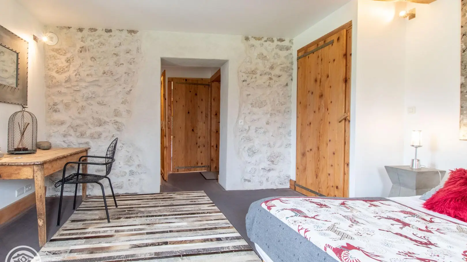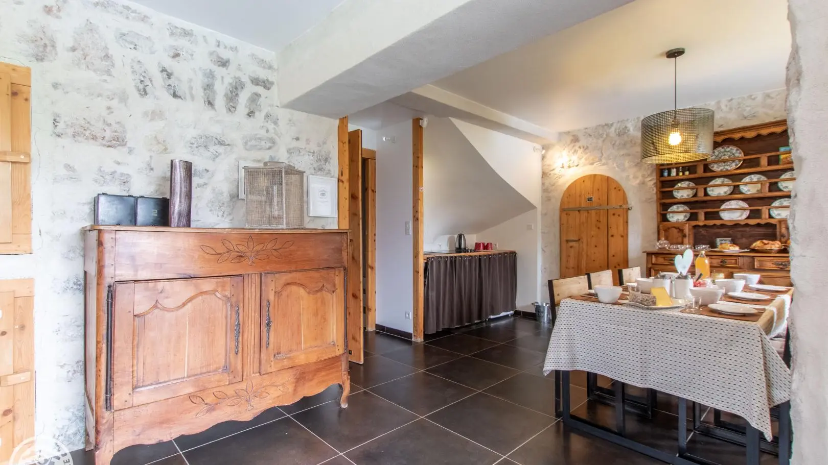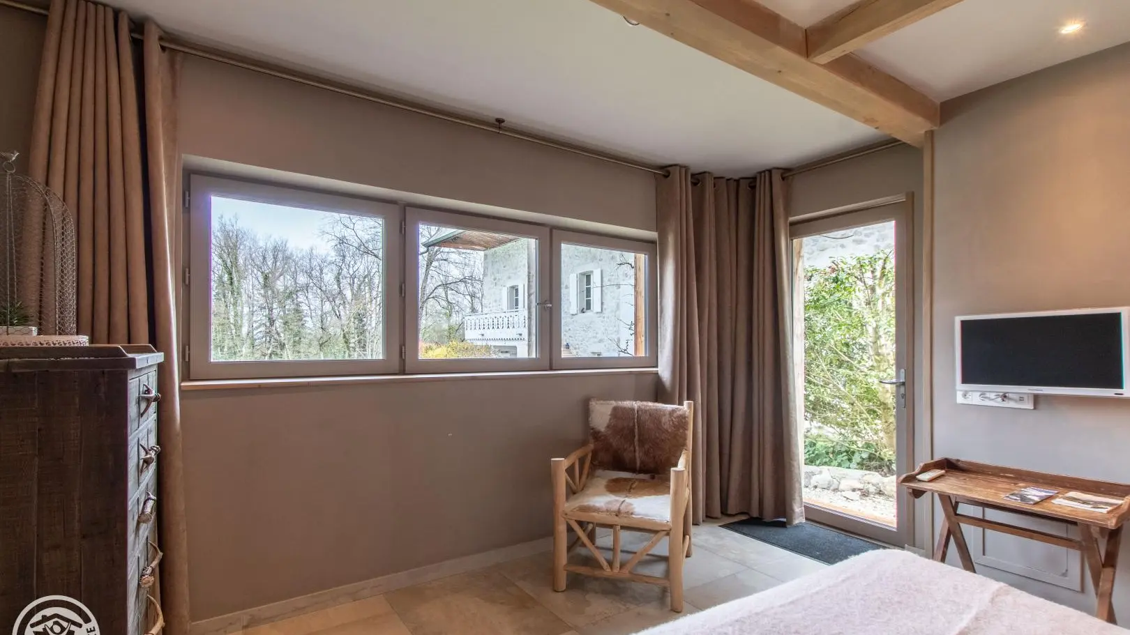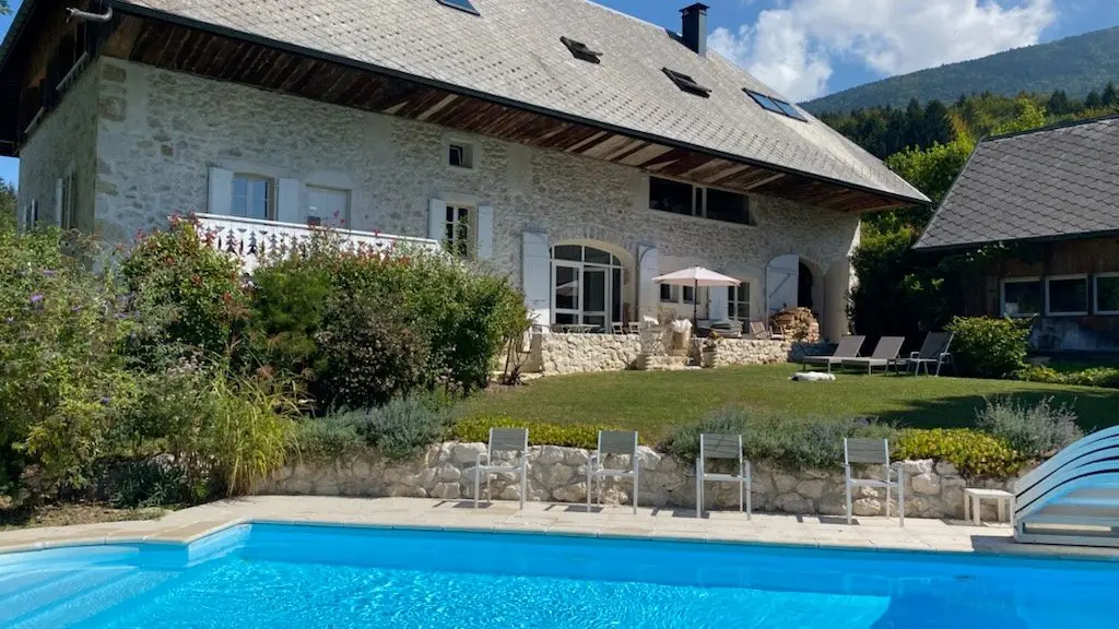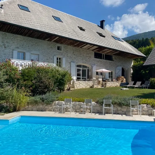 Aux portes des Bauges, dans un ancien corps de ferme entièrement rénové, Sabine vous accueille dans un cadre reposant et feutré. La maison d'hôte est composée de 5 chambres de style mêlant l'ancien au contemporain. Trois chambres ainsi qu'une suite sont situées dans le bâtiment principal, une autre chambre est indépendante, en face de la piscine.