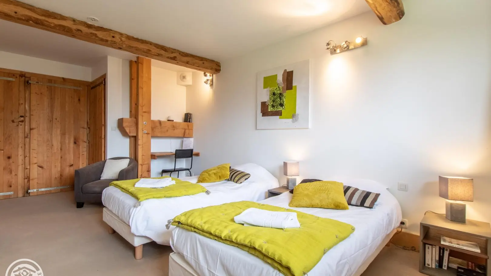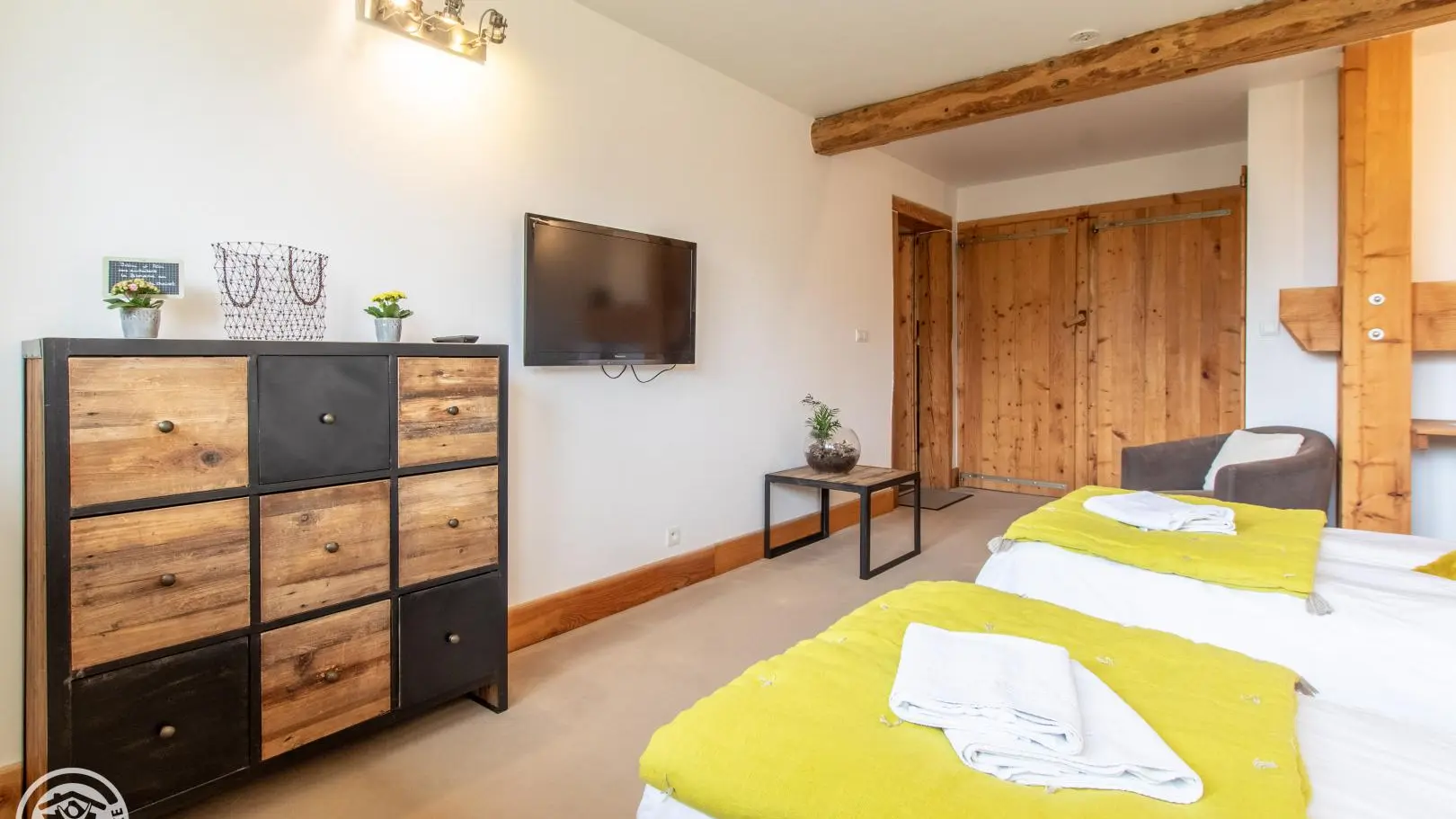 Chaque chambre est pour deux personnes (3 personnes pour le Crêt de Chatillon) avec grand lit, sanitaires complets privés dans chacune des chambres, télévision et connexion internet wifi.