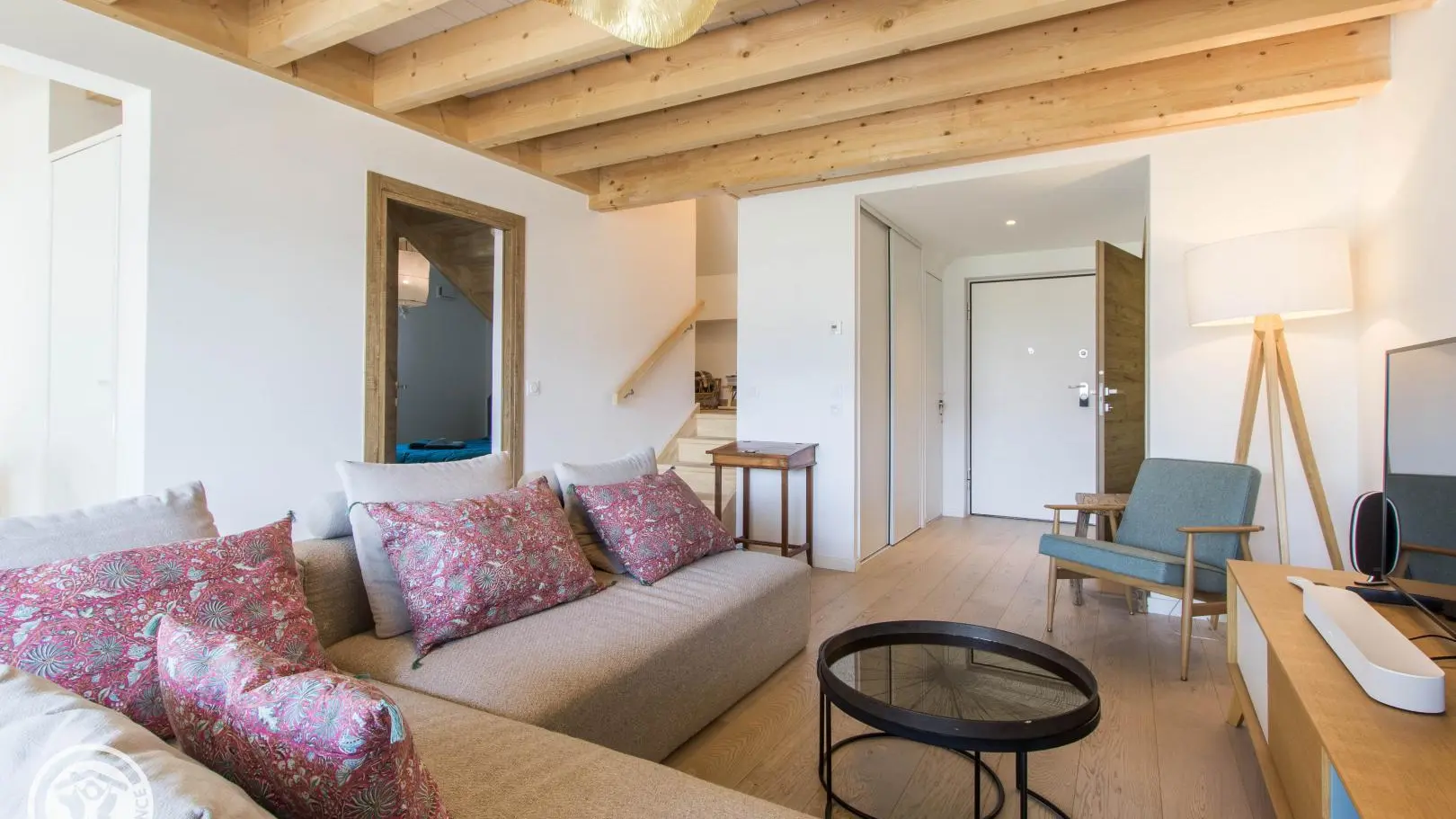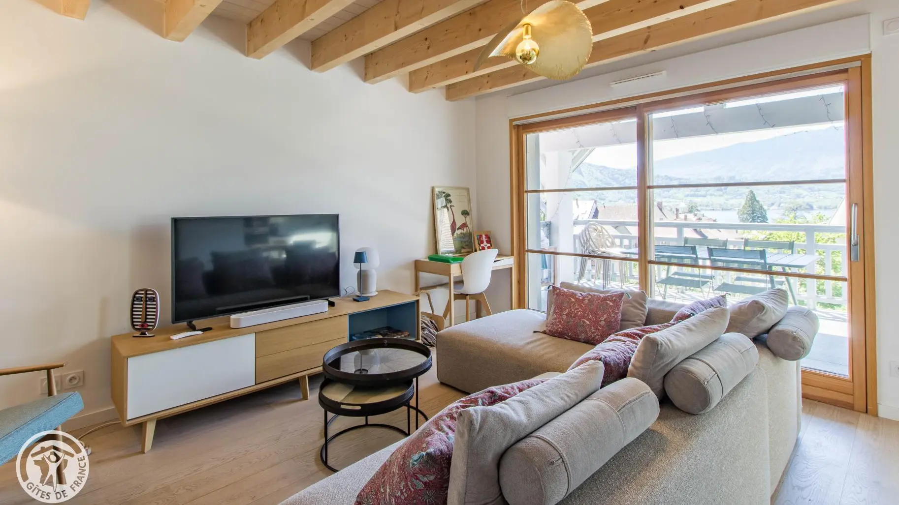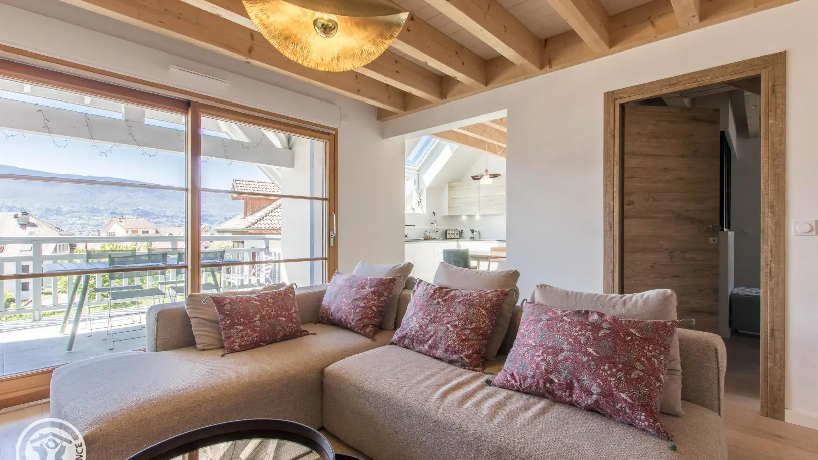 Appartement lumineux en duplex de 76m² (+12m² mansardés) aménagé dans une petite résidence (copropriété), tout proche du centre du village et des rives du lac d'Annecy. Capacité jusqu'à 8 personnes (sans supplément).