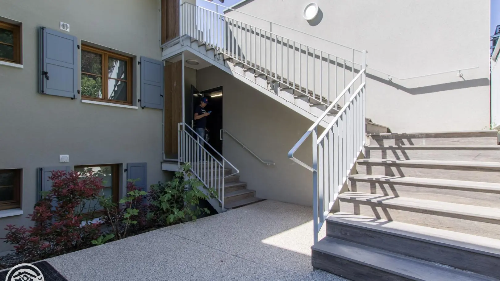 Stationnement : 1 place de garage privative en sous-sol (équipée d'une prise renforcée pour recharge voiture électrique, vélos), 1 place de parking en extérieur (accès à la résidence par escaliers extérieurs).