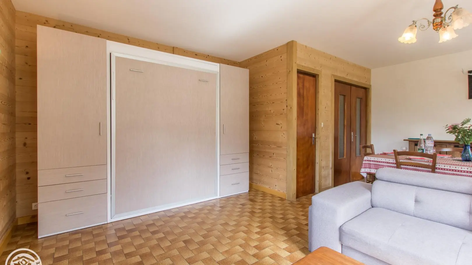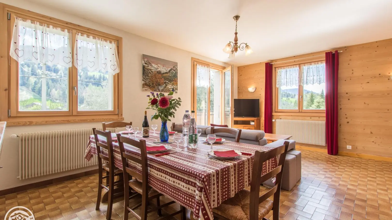Chauffage central. Linge de lits en location auprès du propriétaire, serviettes non fournies, ménage de fin de séjour en option. Centre du village d'Abondance à 1km : commerces, services, restaurants, animations été et hiver. Lac des Plagnes à 4km.