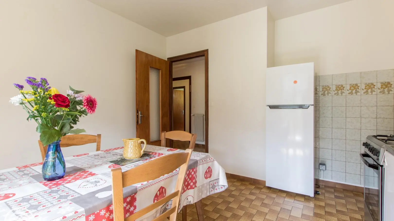 Lave-linge commun avec un autre appartement. Local skis, vélos. Balcon, terrasse privative sur le côté de la maison avec mobilier de jardin, transats. Grand terrain en pente commun sur l'arrière de la maison. Parking sur place dans la cour.