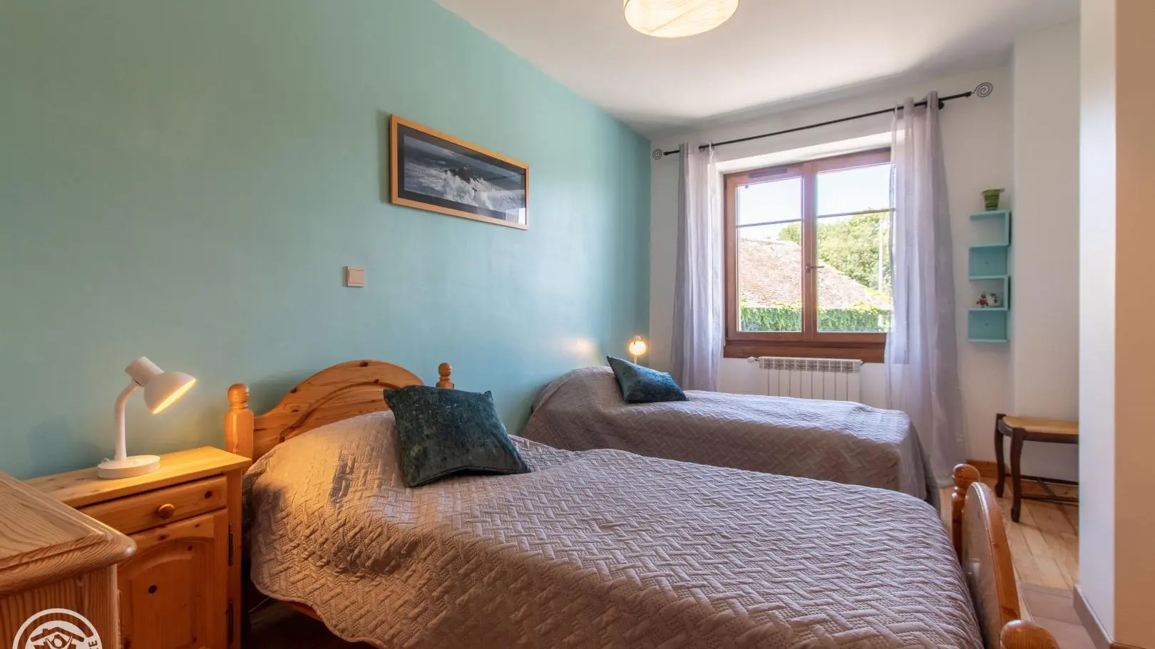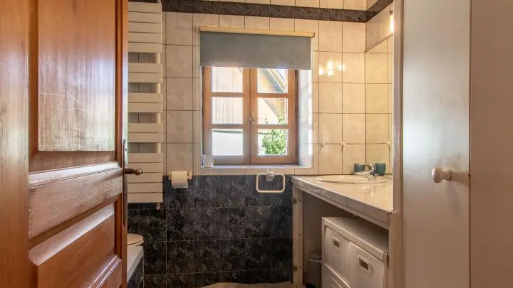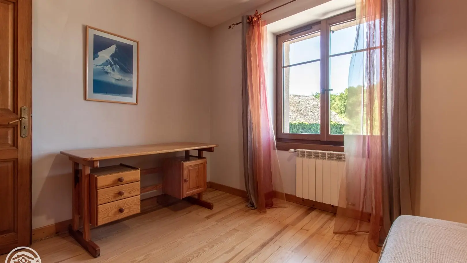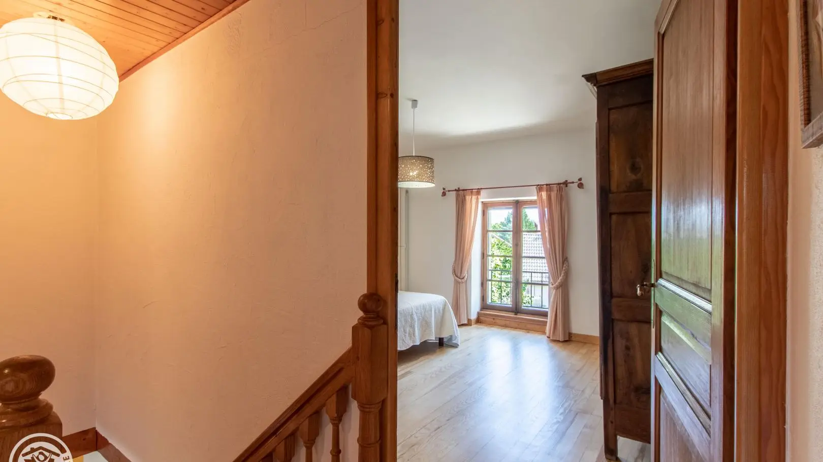 A l'étage, chambre 1 (lit 160x200 cm), chambre 2 (2x 90x190 cm rapprochables), chambre 3 (lit 140x190 cm, bureau). Salle de bains avec baignoire (non-balnéo), WC.