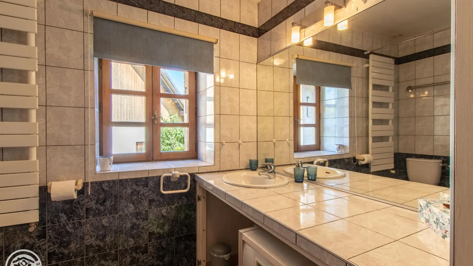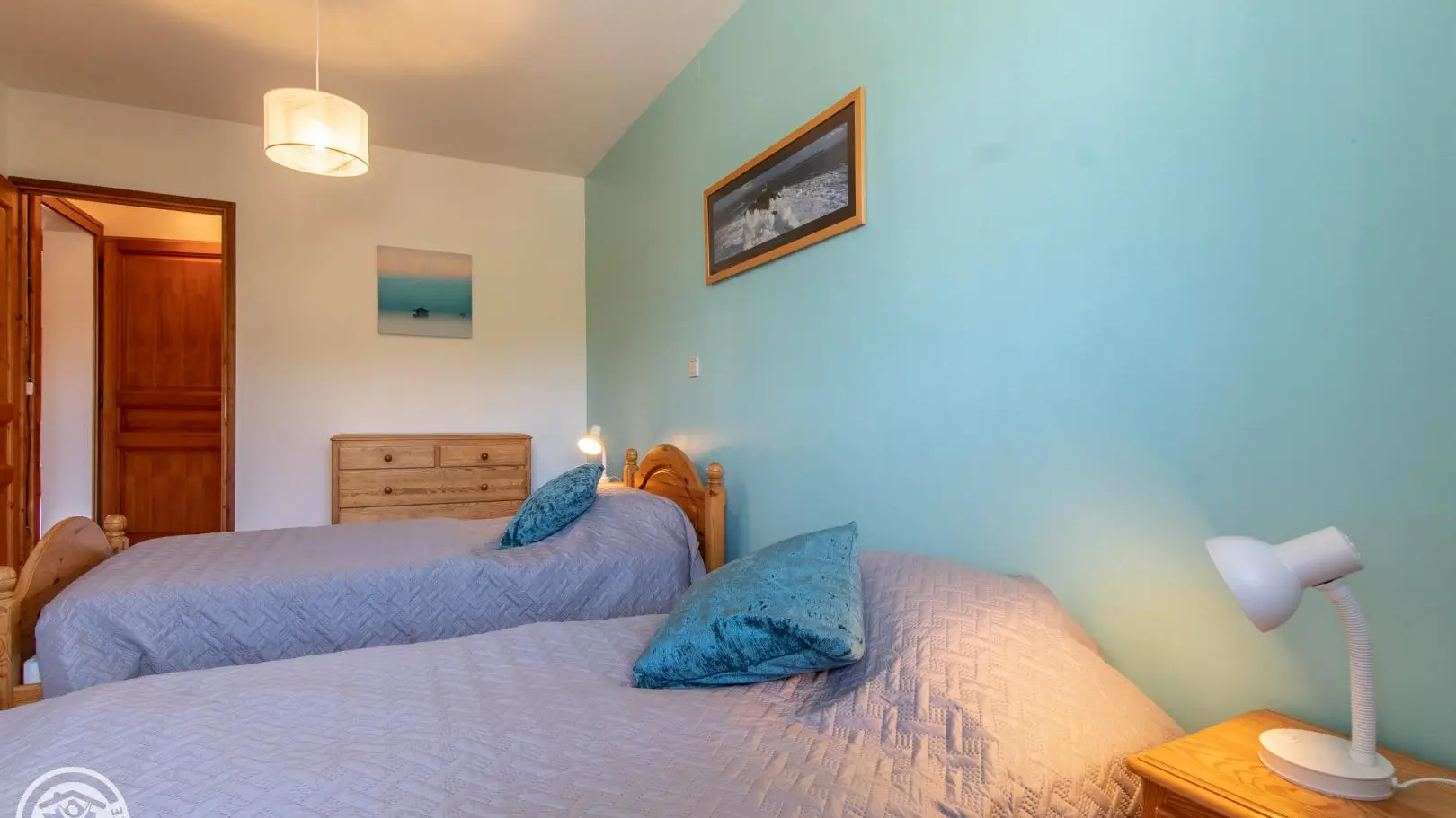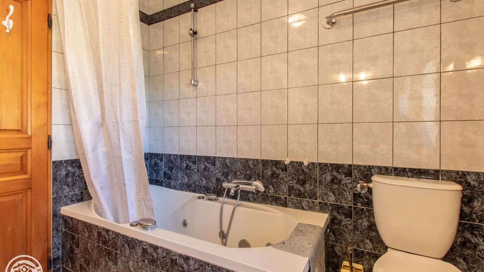 A l'étage, chambre 1 (lit 160x200 cm), chambre 2 (2x 90x190 cm rapprochables), chambre 3 (lit 140x190 cm, bureau). Salle de bains avec baignoire (non-balnéo), WC.