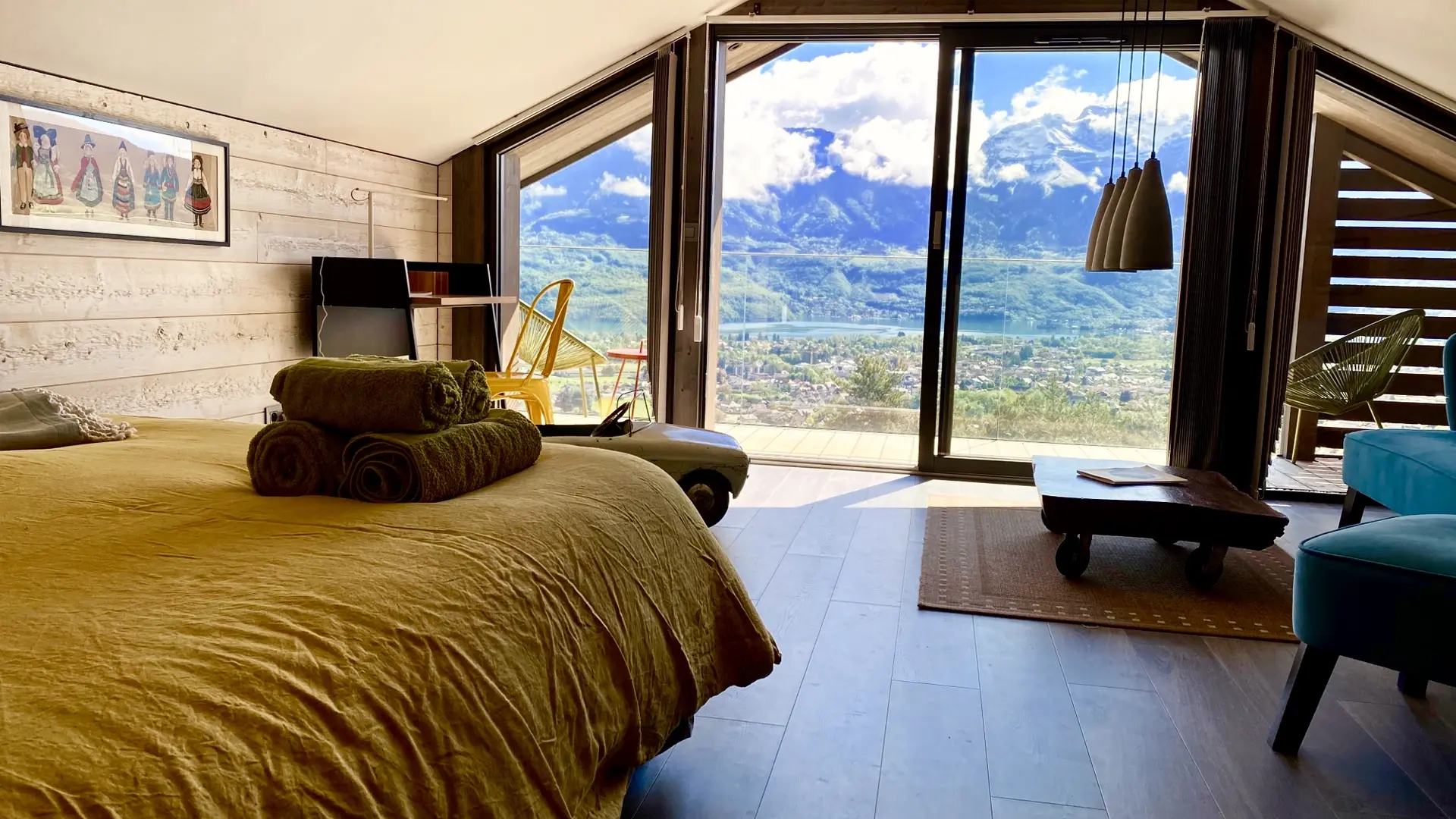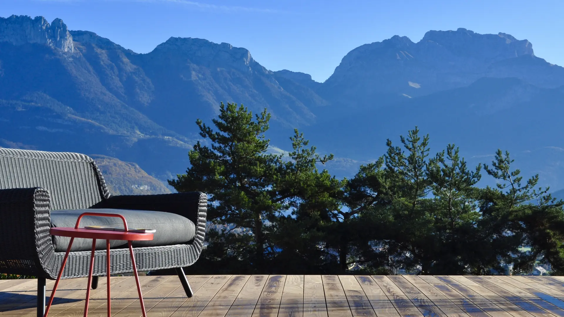 Commencez votre journée en savourant un petit-déjeuner sur le vaste balcon ensoleillé, face à l’étendue bleutée du lac. Le soir, laissez-vous émerveiller par les magnifiques couchers de soleil qui embrasant les sommets environnants, tandis qu’au loin, le château de Menthon-Saint-Bernard et les Alpes se découpent à l’horizon.
