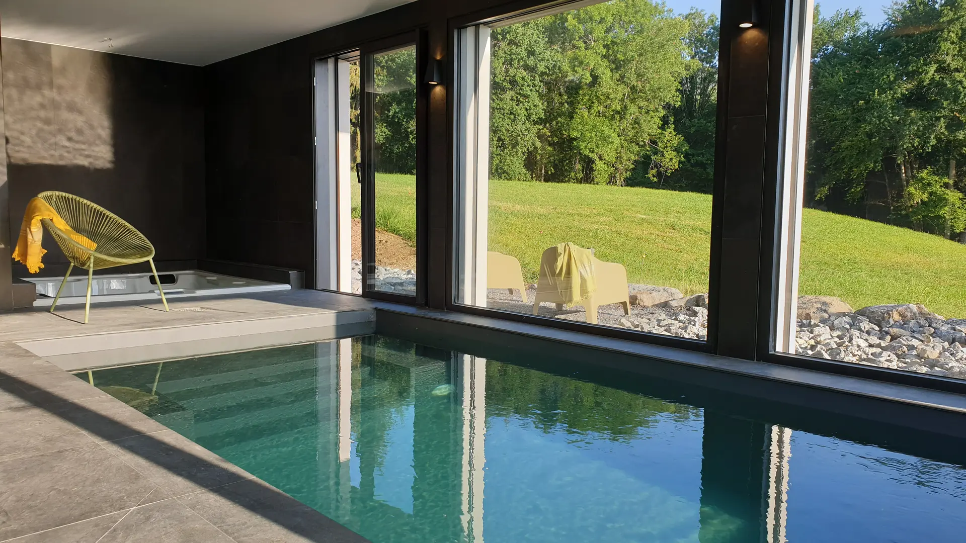 Plongez dans la douceur de notre jacuzzi ou détendez-vous dans la piscine couverte, tous deux offrant une vue imprenable sur le lac. Une parenthèse de sérénité, où le temps s’arrête et où chaque instant est une invitation à la relaxation.