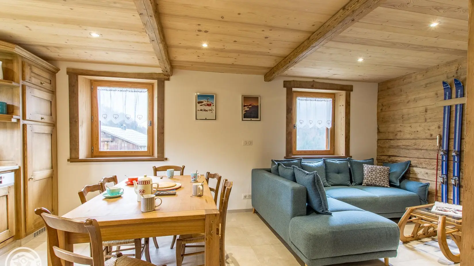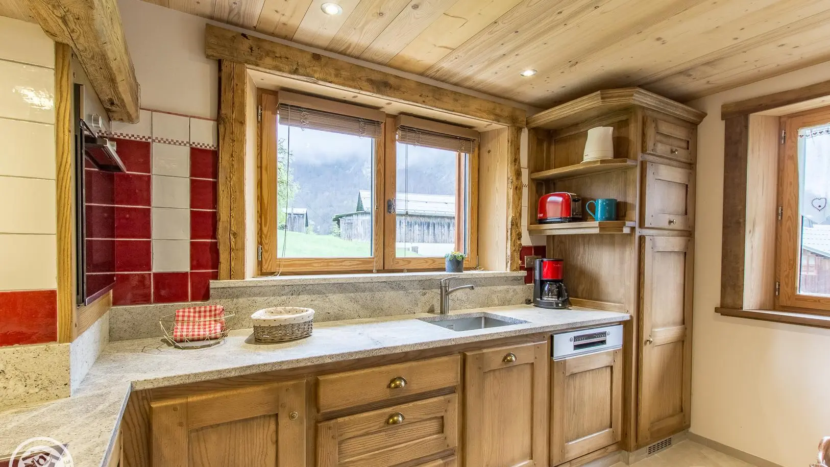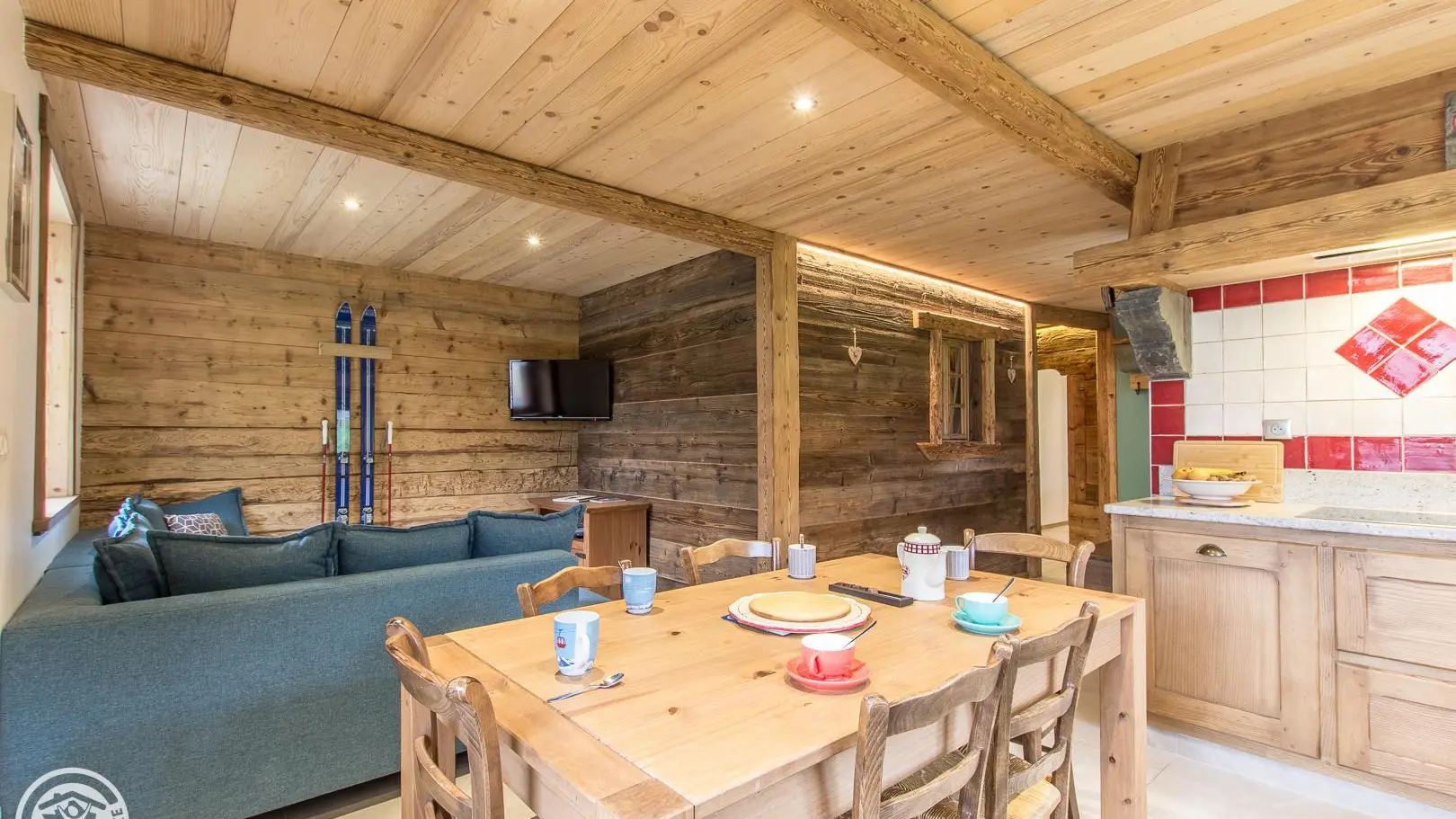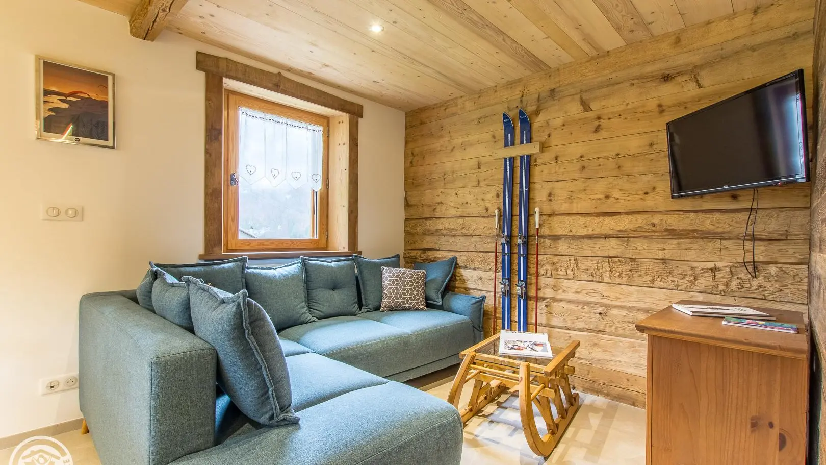 A proximité immédiate des remontées mécaniques de la station familiale de Sixt-Fer-A-Cheval (Grand-Massif) : gîte de 55m2 aménagé de plain-pied au rez-de-chaussée d'un magnifique chalet de montagne comprenant également le logement des propriétaires (à l'étage).