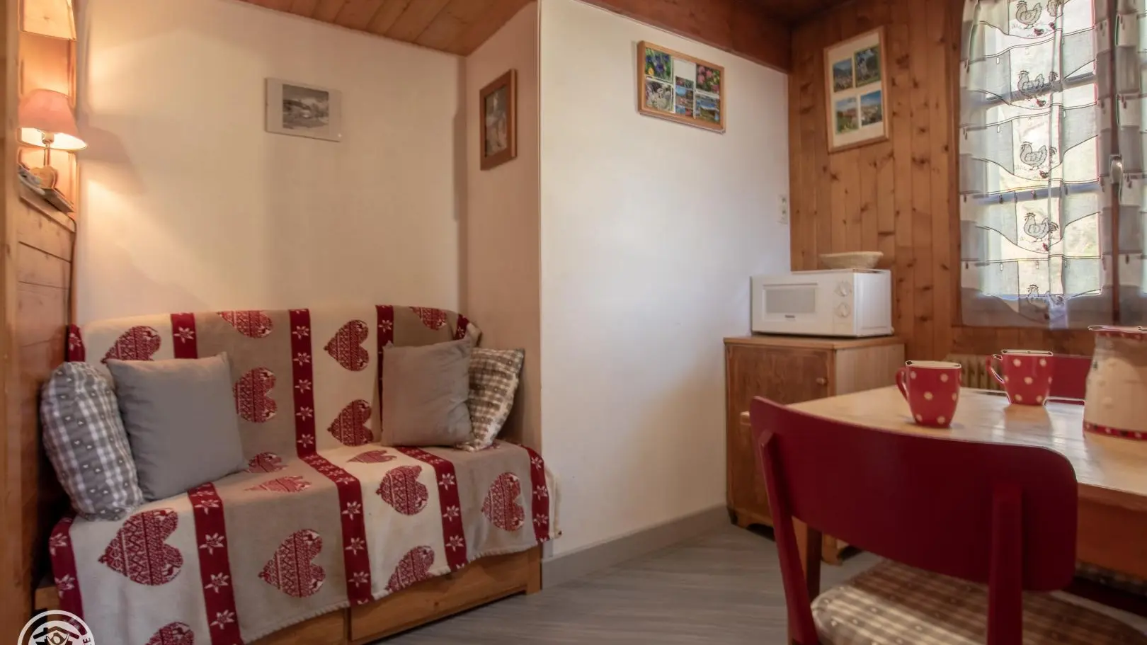 Maison comprenant 2 gîtes et le logement des propriétaires. Gîte de 16 m² au 2ème étage : coin cuisine /coin repas / petit coin séjour, coin nuit (1 lit 140 cm), salle de bain (baignoire sabot) avec wc. Draps fournis. Chauffage central. Terrain commun à l'arrière de la maison avec salon de jardin. Gîte en bordure de route reliant Annecy aux stations des Aravis. A 10 minutes de la station de La Clusaz (garderies enfants, ski artistique, traîneaux, patinoire naturelle) et du Grand-Bornand. Arrêt de l'autocar Annecy/La Clusaz à 200 m. GITE NON FUMEUR. 1 seul animal est accepté dans le gîte.