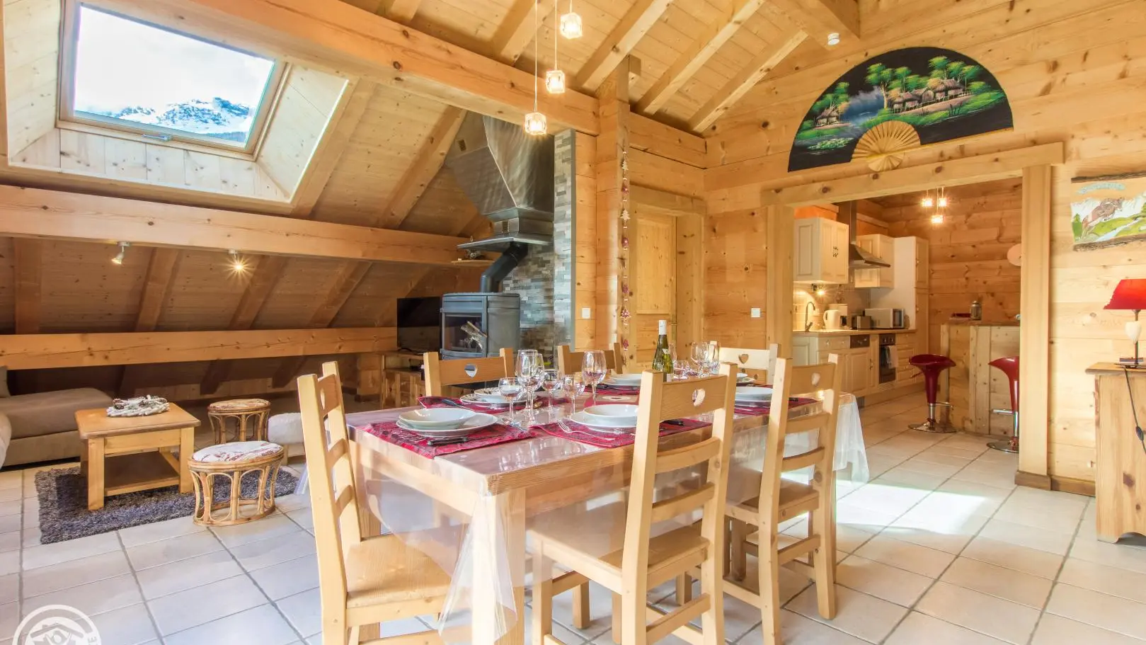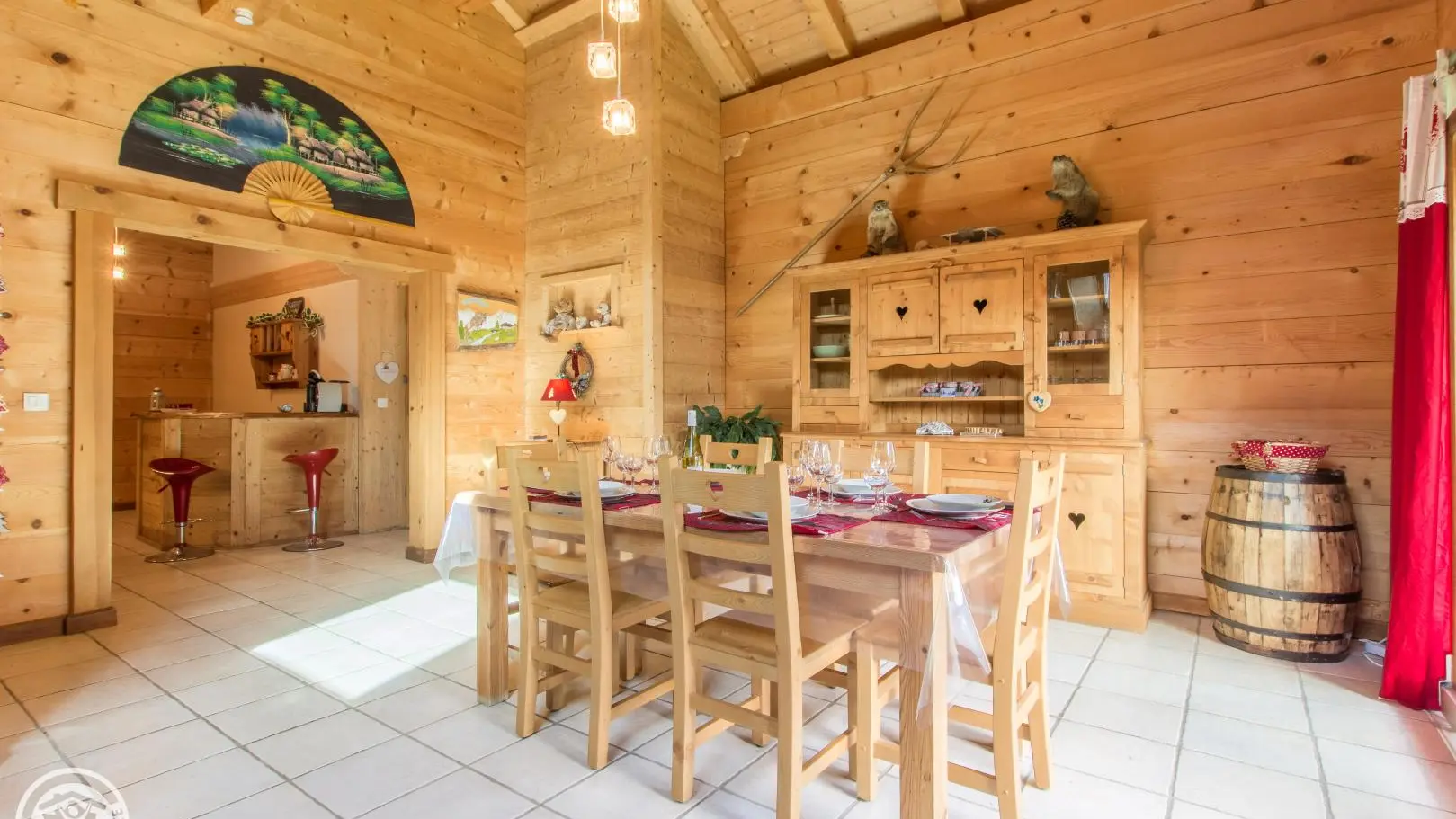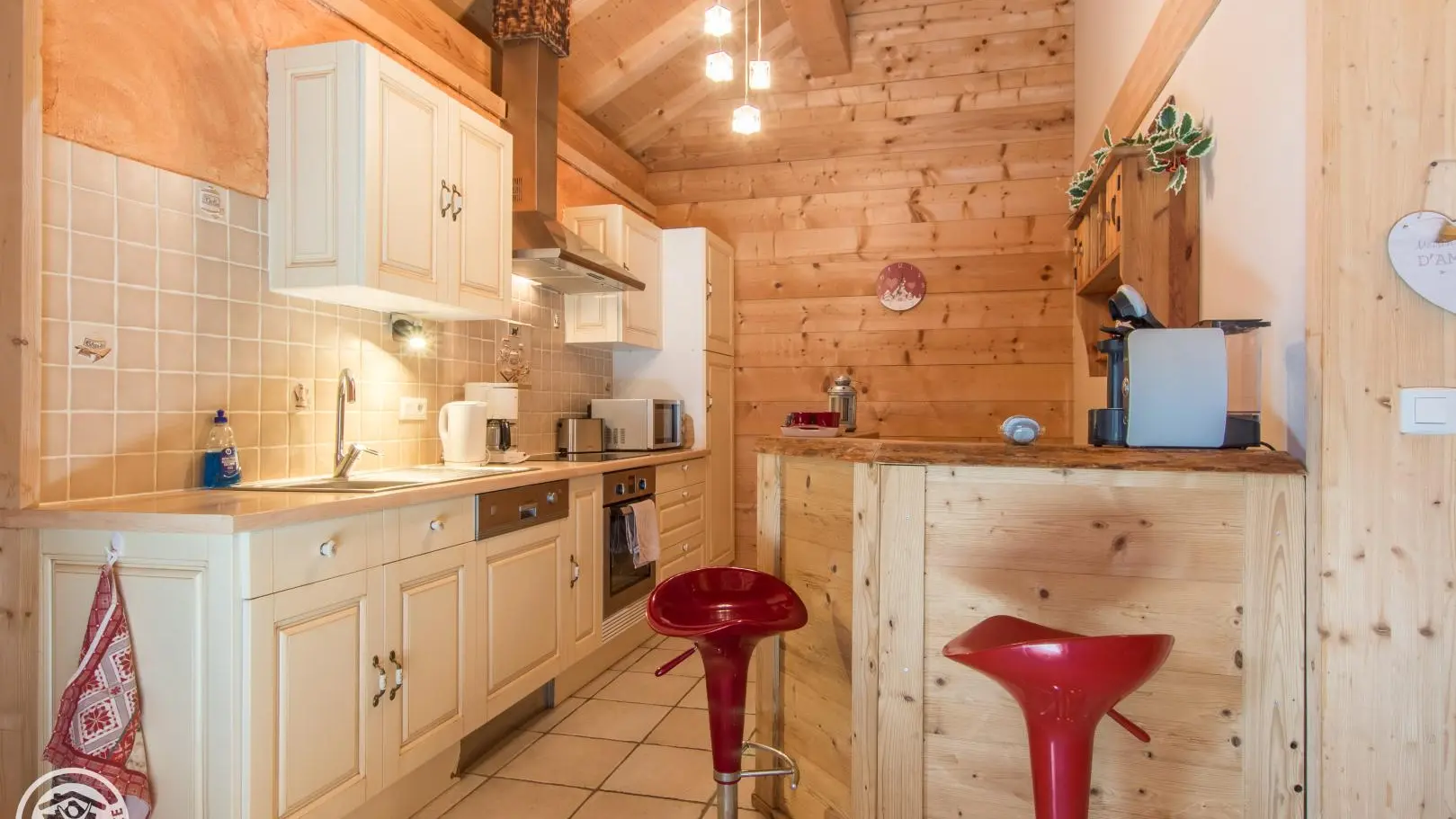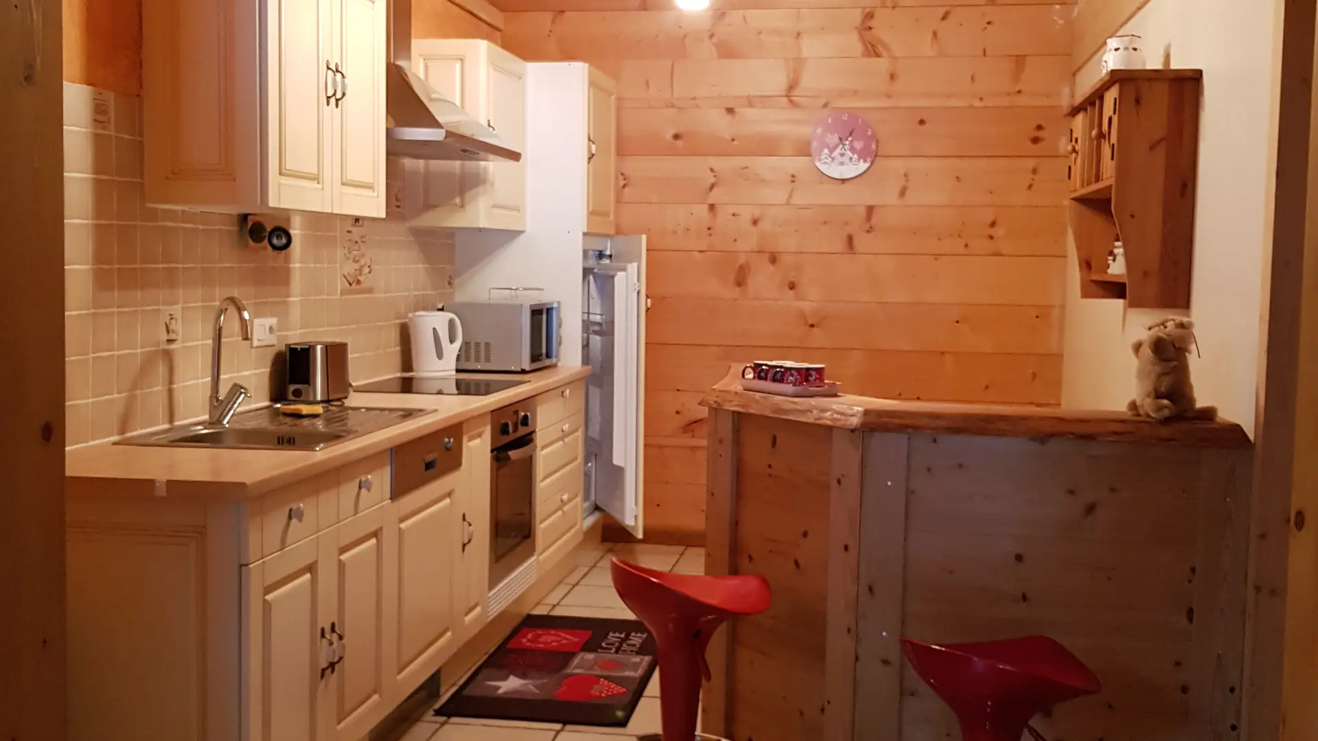 La cuisine dispose de tout l’électro ménager nécessaire, micro-onde, four traditionnel, frigo, lave vaisselle, appareil raclette, fondue...machine à café..