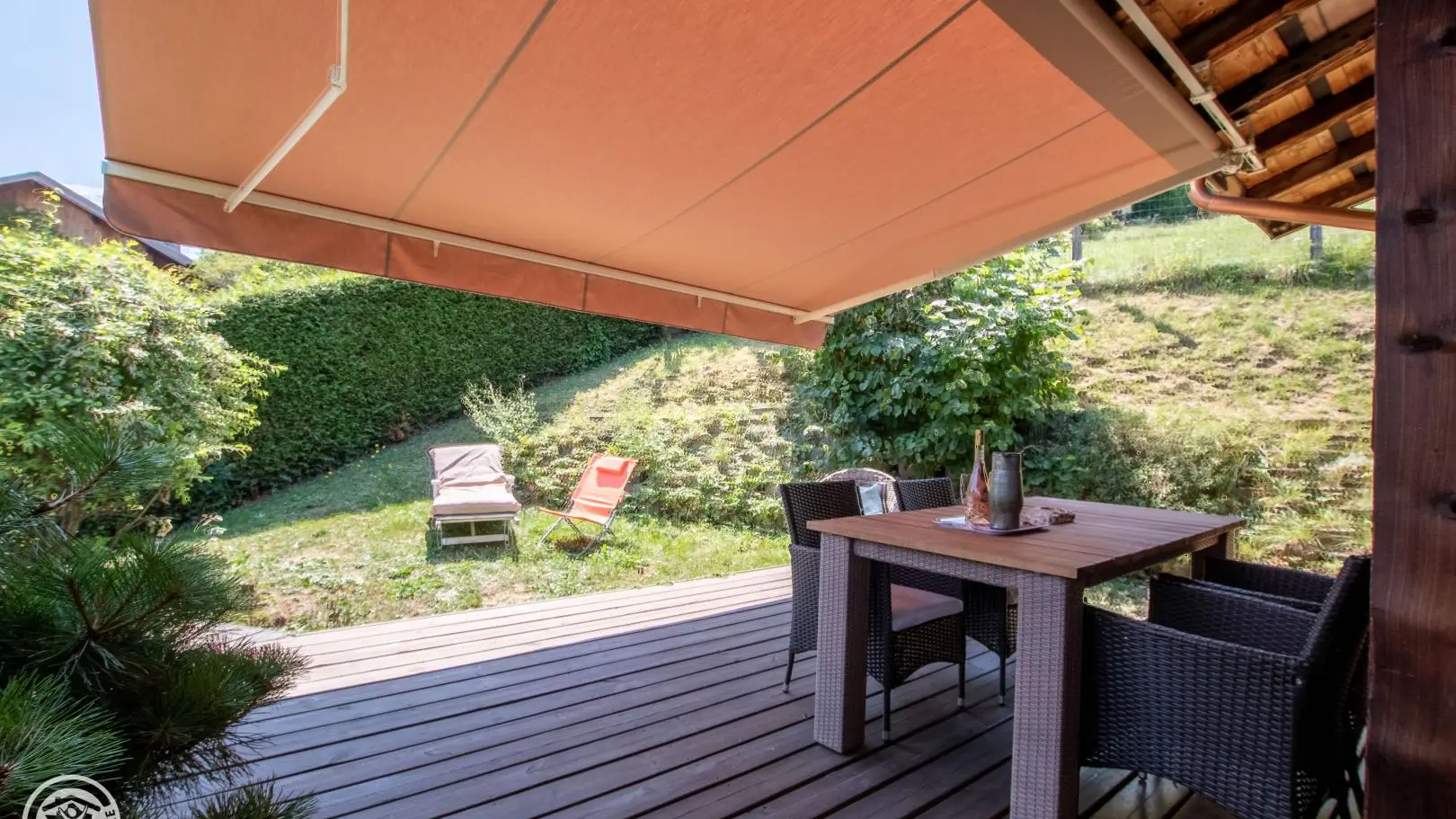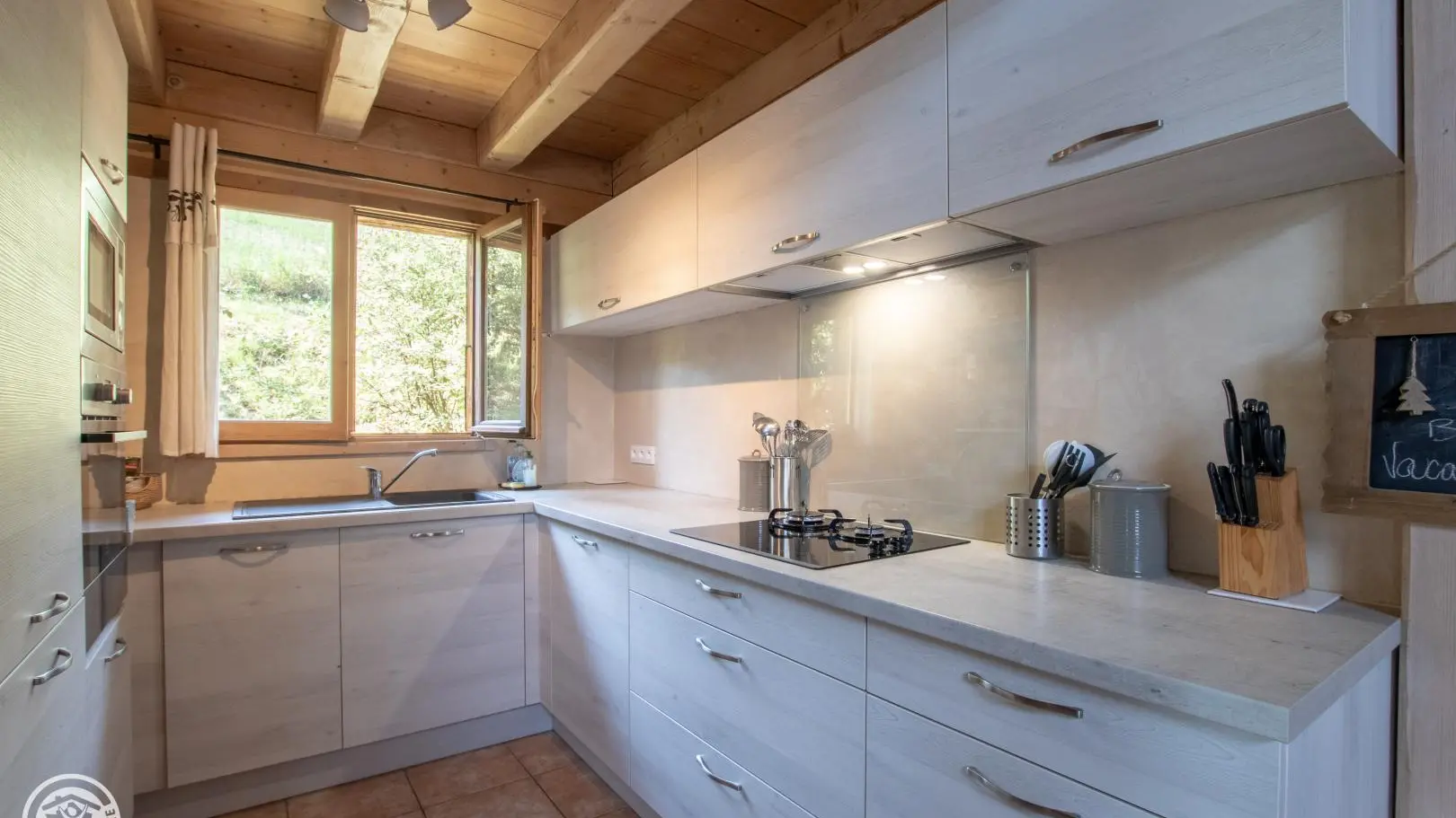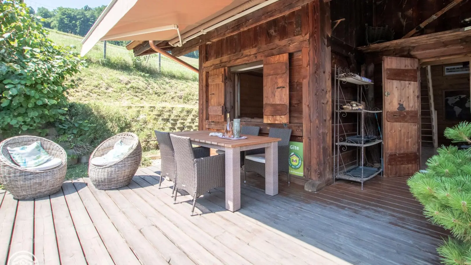 Le chalet est mitoyen avec un autre gîte 2 personnes (chacun dispose de son entrée indépendante). Accès par escaliers. Au 1er niveau : séjour, espace repas, cuisine intégrée, Chambre 1 (1 lit 140), salle d'eau avec wc. A l'étage : grande mezzanine très mansardée (1,75m au plus haut - .33 au plus bas) avec coin nuit (1 lit 140 + possibilité lit d'appoint), et coin détente (canapé, bibliothèque). Possibilité de location des draps (lits faits à votre arrivée). Lave-linge et sèche-linge sur demande.