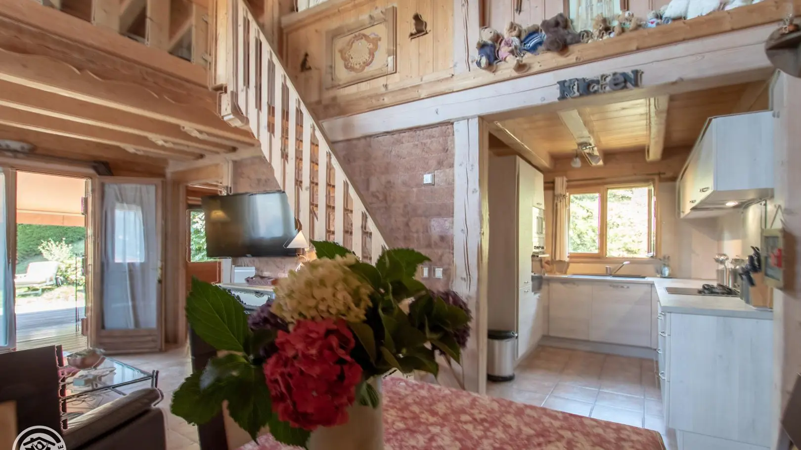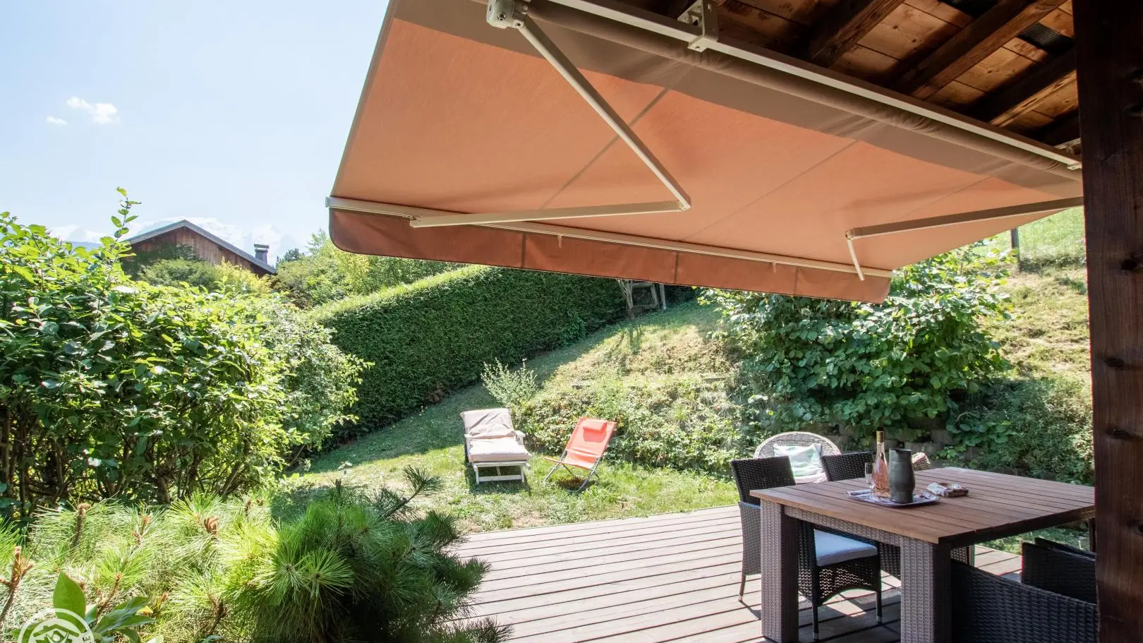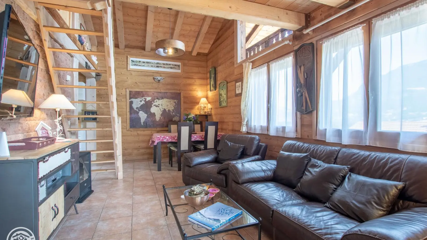 Au cœur du Pays du Mont-Blanc, panorama sur le massif du Mont-Blanc pour ce chalet de caractère (47m2 + mansardes) aménagé sur 2 niveaux à côté de la maison des propriétaires.