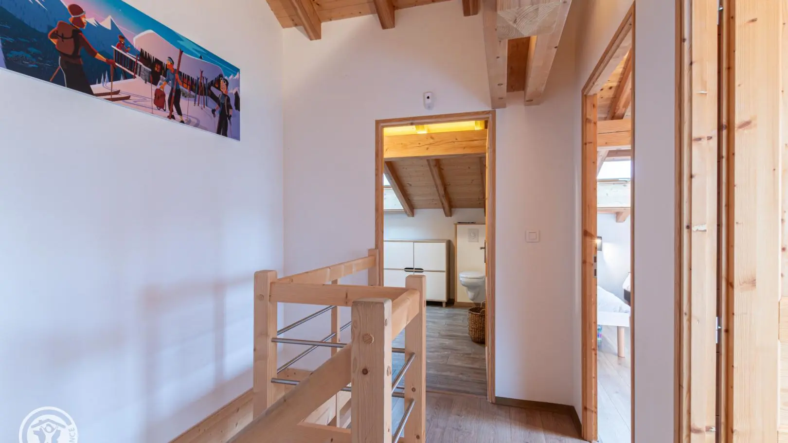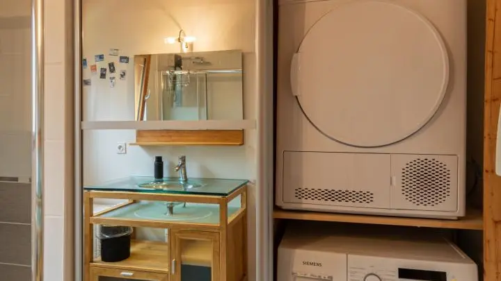Accès à la chambre 1 (lit 160x200, TV sur meuble), à une salle d'eau (avec douche à l'italienne, lave-linge et sèche-linge) et WC indépendant, ainsi qu'à un espace cellier.