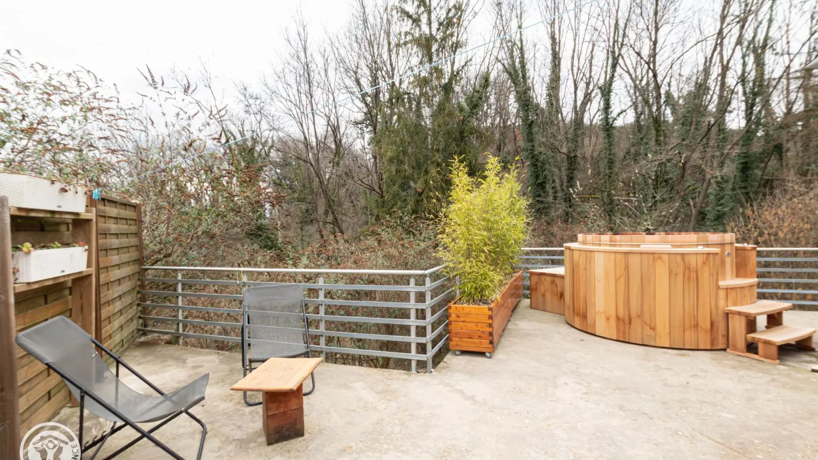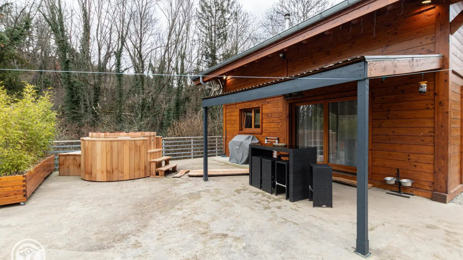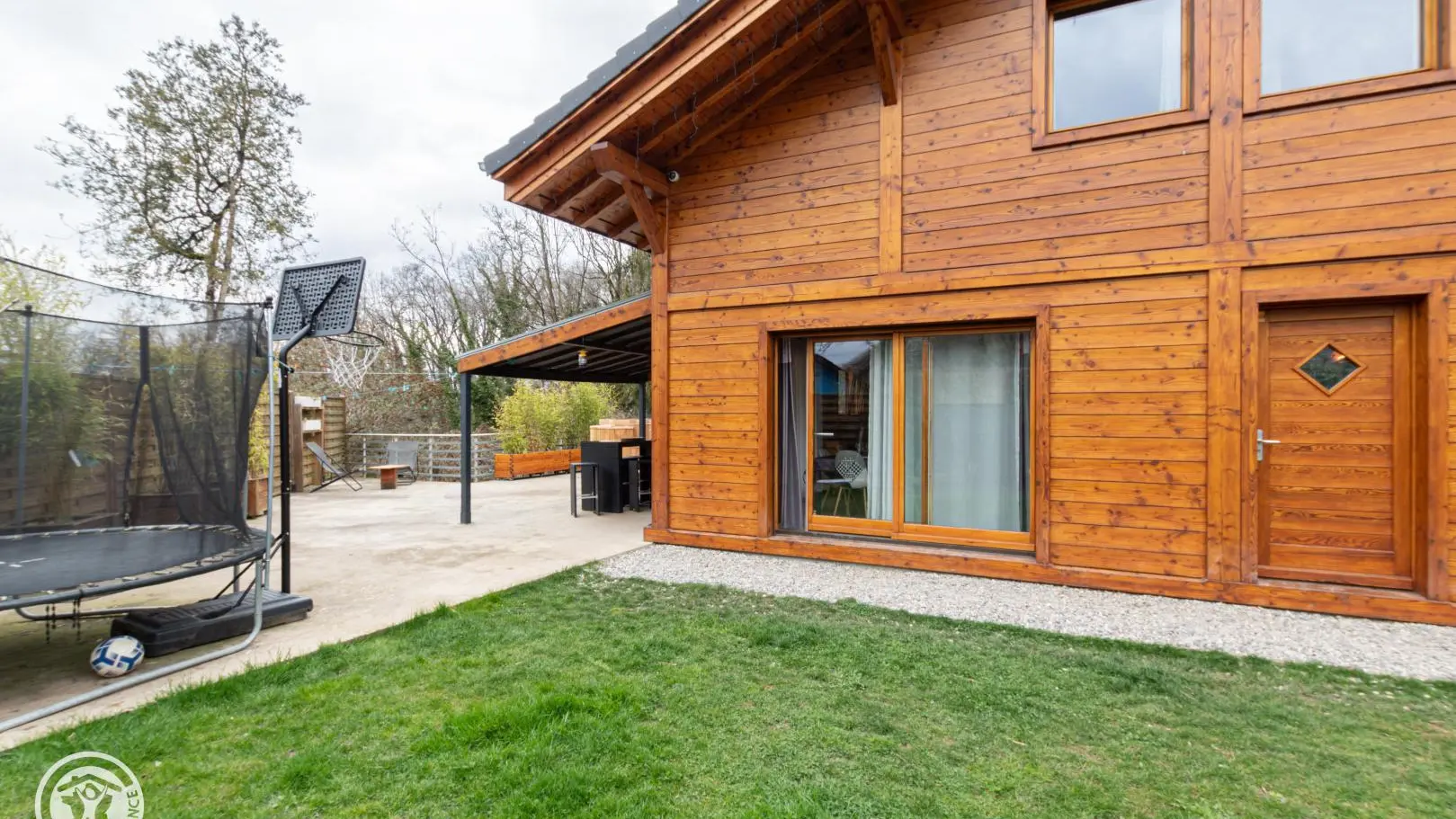Internet wifi haut-débit. Grande terrasse en partie abritée (salon de jardin, transats, barbecue, trampoline…). SPA Storvatt en red cedar inclus.