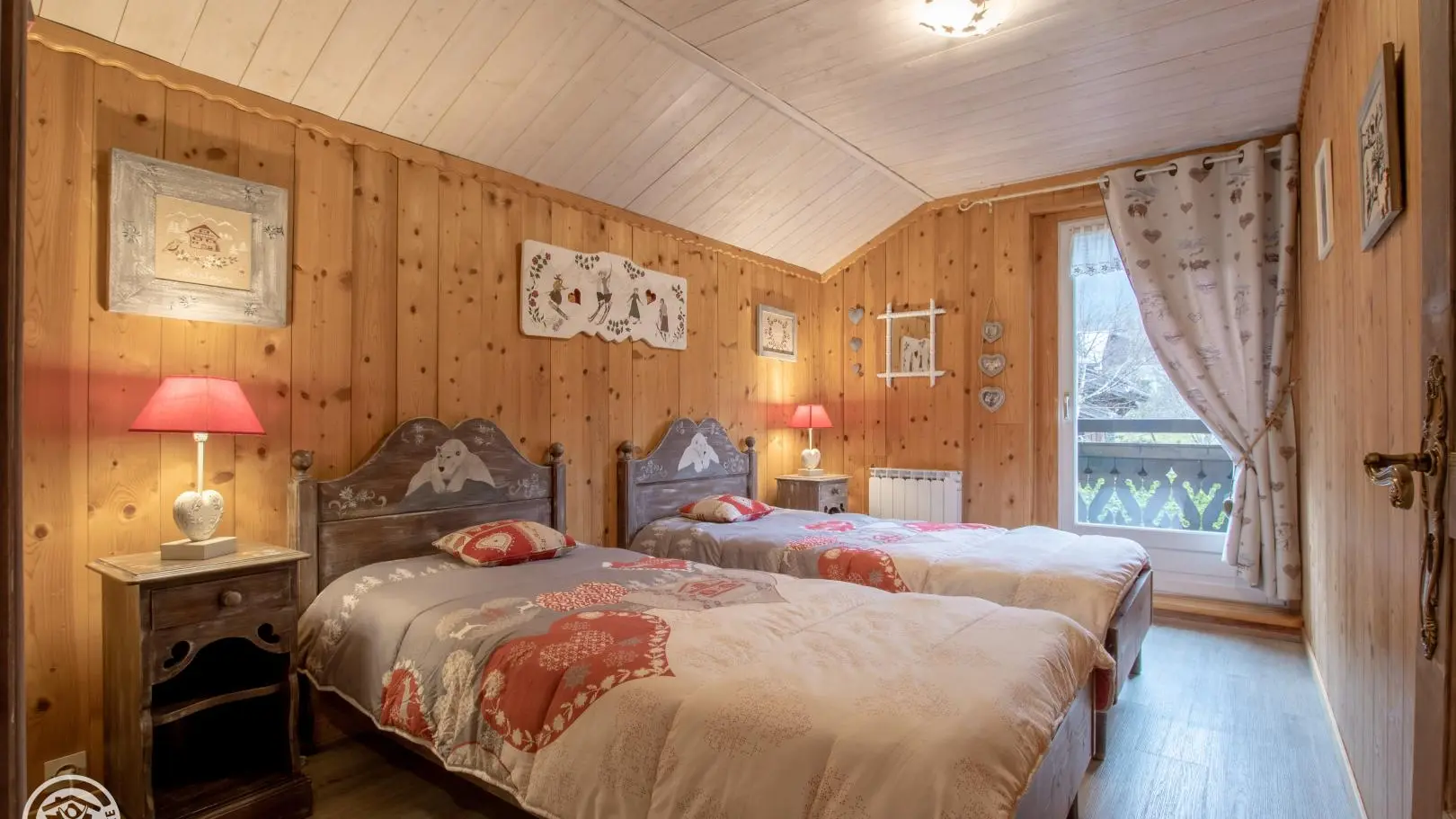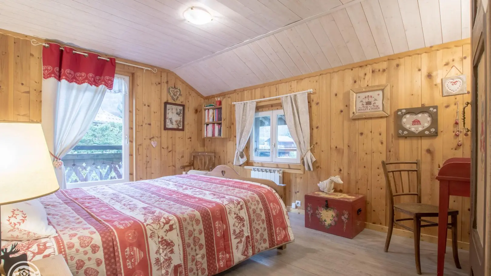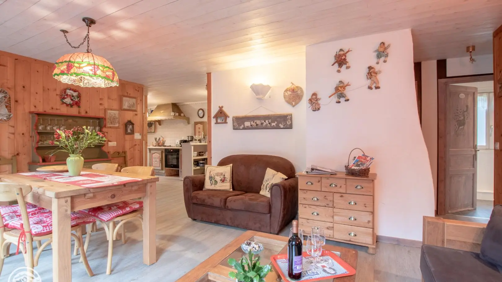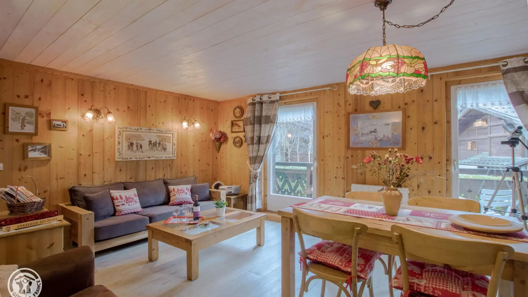 Vue panoramique sur le Mont-Blanc, ds un site verdoyant et calme de la vallée. Beau chalet des années 30 comprenant le logt des propriétaires et 1 gîte de 68 m2 au 1er étage (entrée indép.). Cuisine équipée ouverte sur gd séjour agréablement décoré (cl...