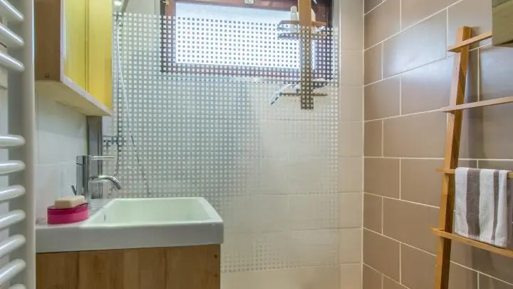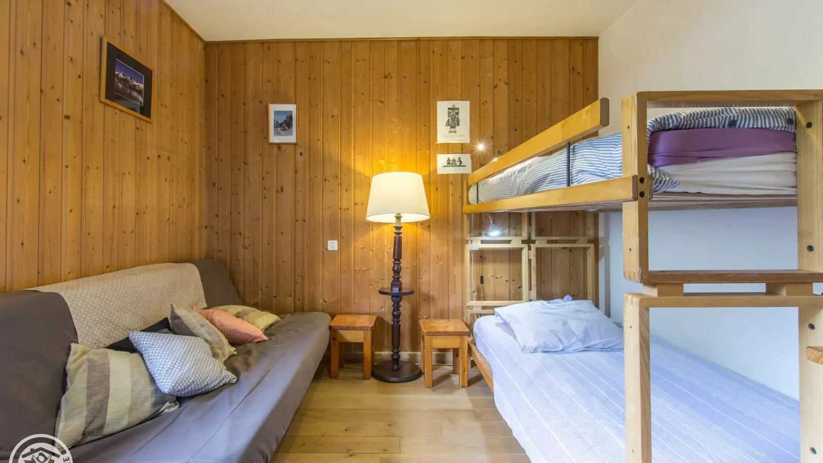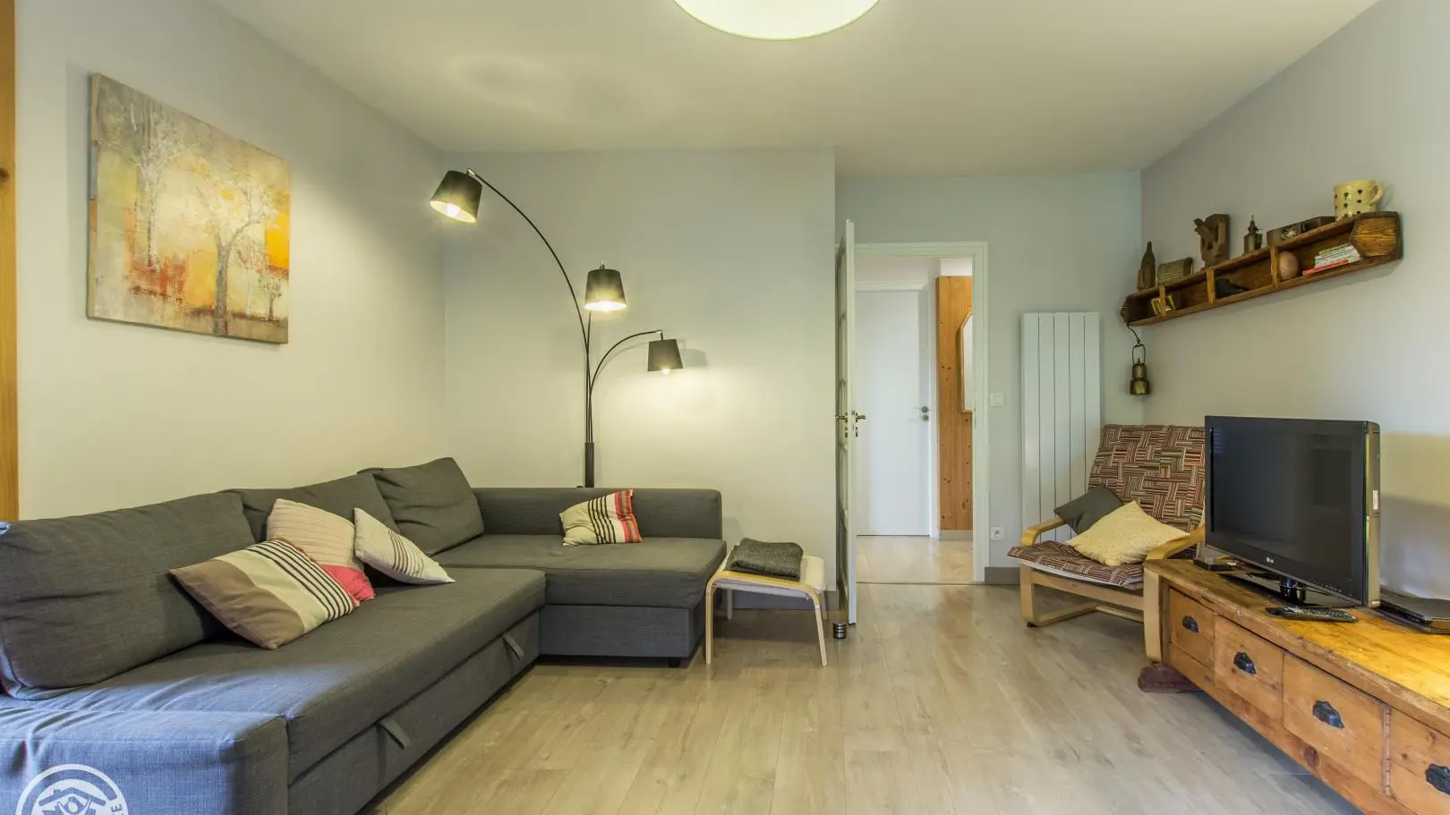 Dans le gîte: couloir de distribution, pièce de vie avec cuisine intégrée ouverte sur séjour (Tv, canapé), chambre 1 (1 lit 160x200cm), chambre 2 (1 lit 140x190cm, salle d'eau privative avec douche), chambre 3 (2 lits 90x190cm superposés, clic-clac), salle d'eau indépendante (douche, wc), wc indépendant.