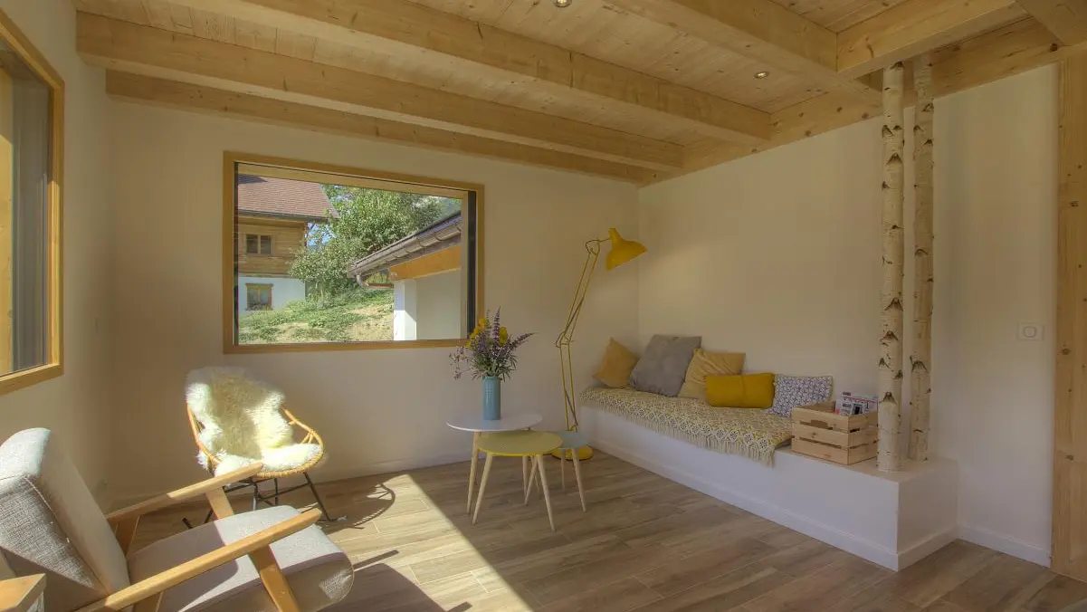 Chalet individuel de 111m2 aménagé sur 2 niveaux, à proximité du logement des propriétaires.