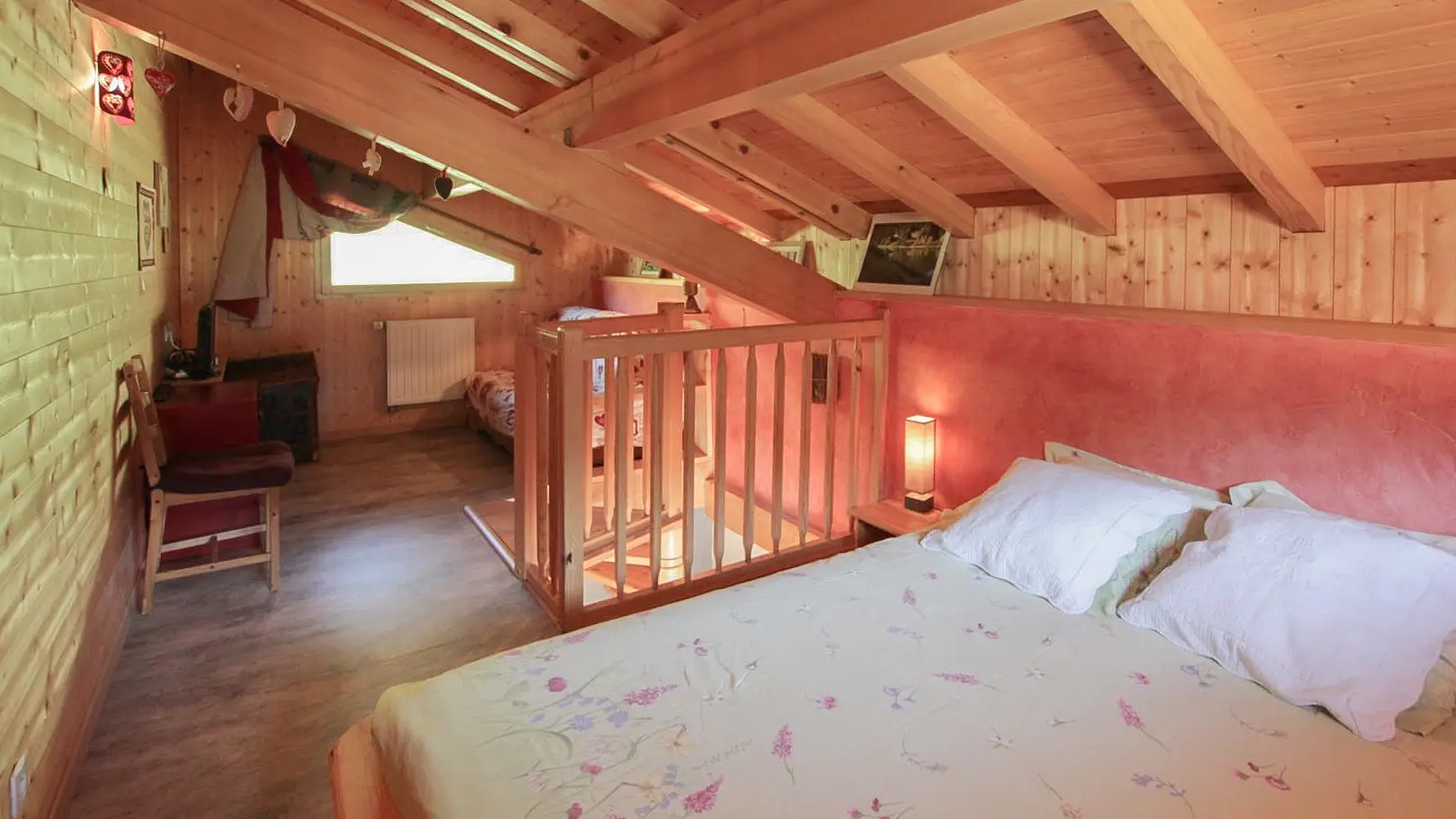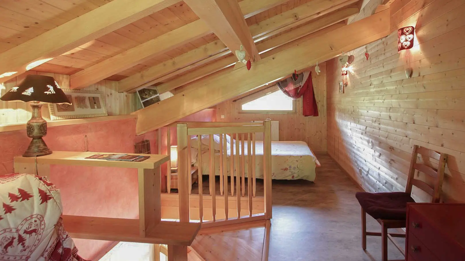 A proximité des nombreux sentiers de randonnées ou des pistes de ski (domaine skiable Hirmentaz 1.5km, Habère-Poche 1km), gîte en duplex (34m2 dont mansardes) aménagé au 1er étage du chalet des propriétaires. Cuisine intégrée, salle d'eau (douche, WC)....