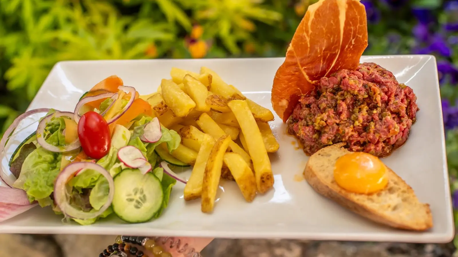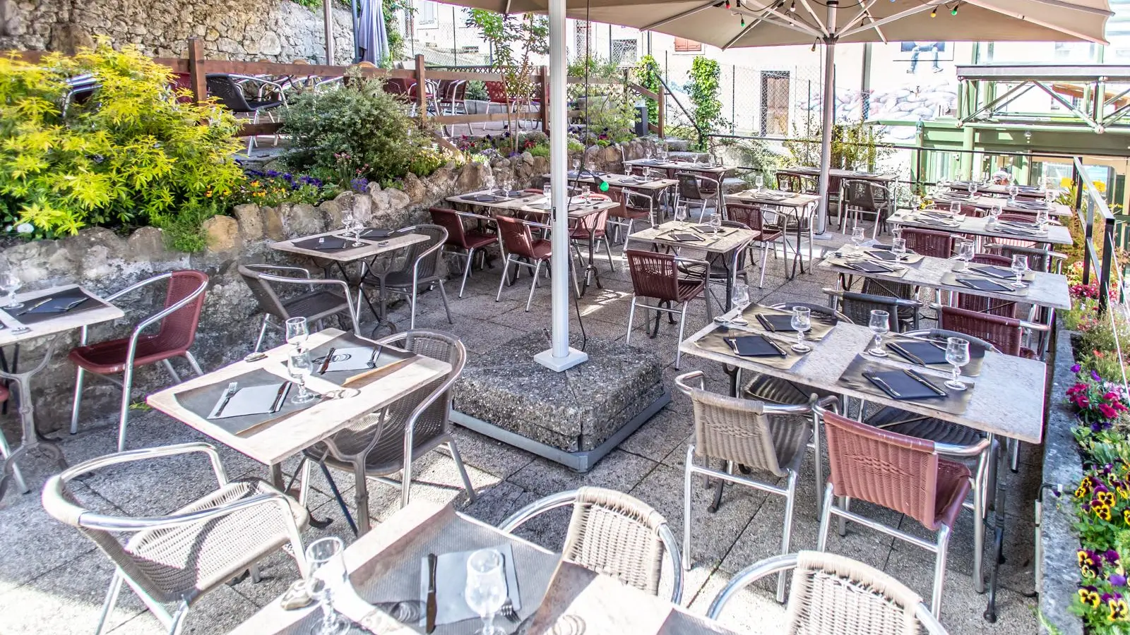 Le Patio vous accueille dans un cadre chaleureux avec terrasse fleurie et salle cosy climatisée. Cuisine maison et gourmande à savourer face au lac, au pied du funiculaire, sur le Port de Rives.