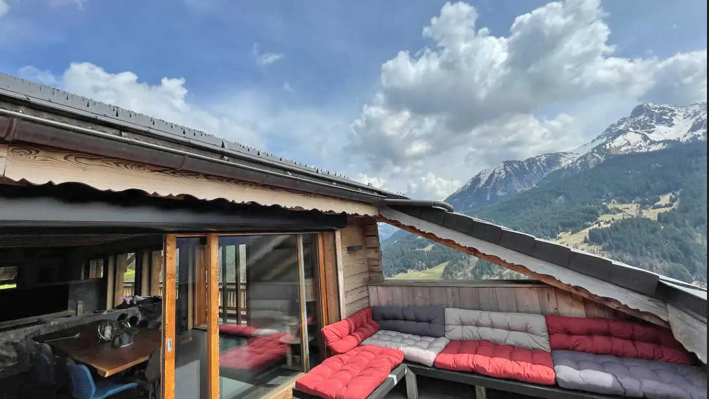 Balcons, terrasse avec mobilier de jardin, barbecue gaz, transats. Chauffage au sol (alimentation bois).