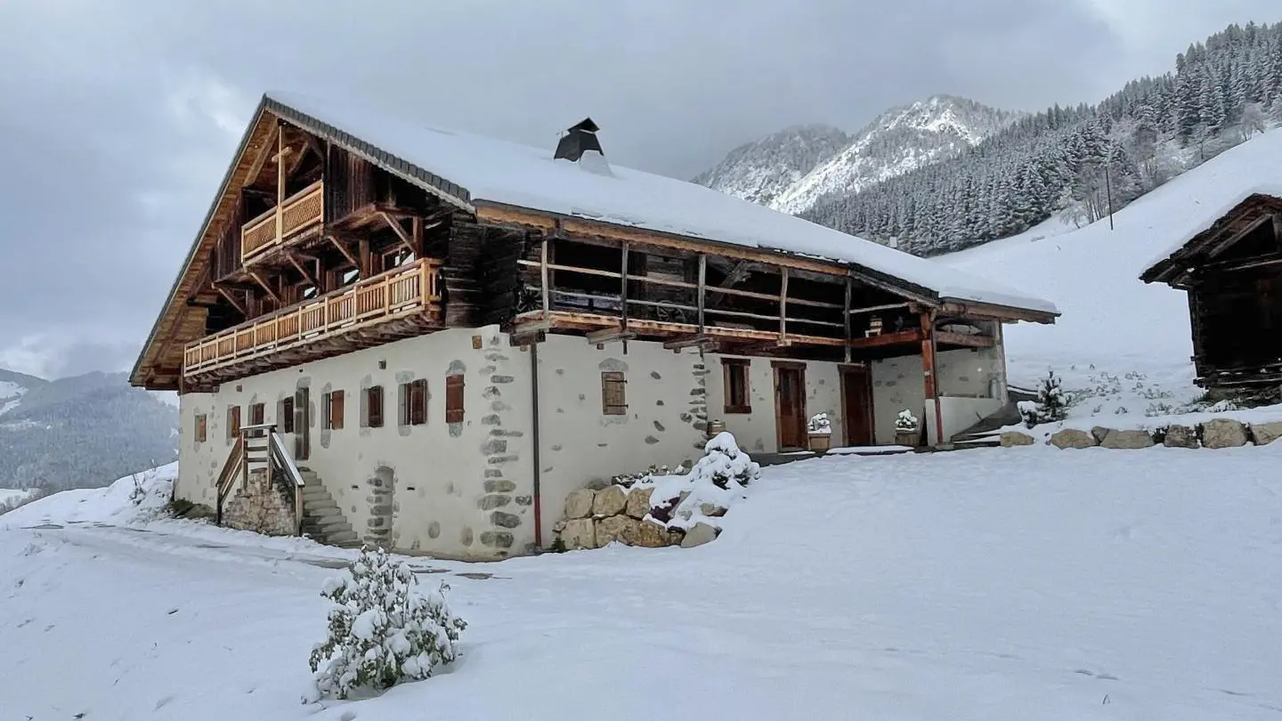 Gîte de 275m2 aménagé au 1er et 2ème étage d'une ancienne ferme Savoyarde de caractère datant du début du 19ème siècle, et comprenant également le logement des propriétaires.