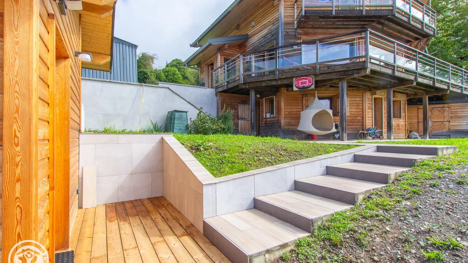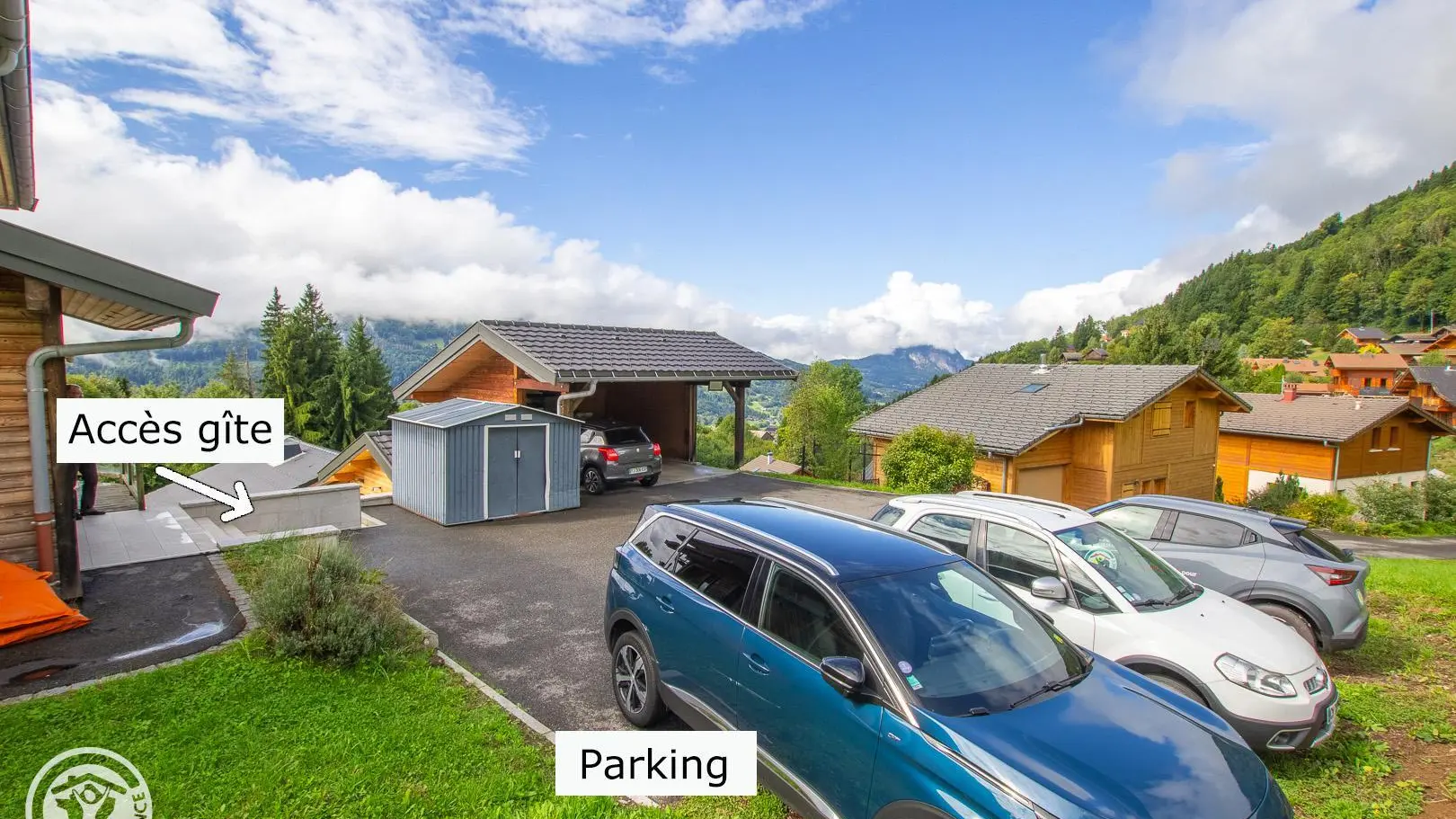 L'accès au gîte s'effectue depuis un escalier extérieur depuis le parking (le gîte est au niveau -1 par rapport au parking).