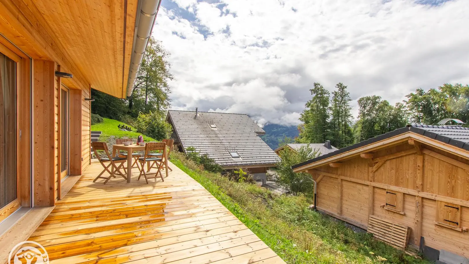 Terrasse avec mobilier (table et chaises).