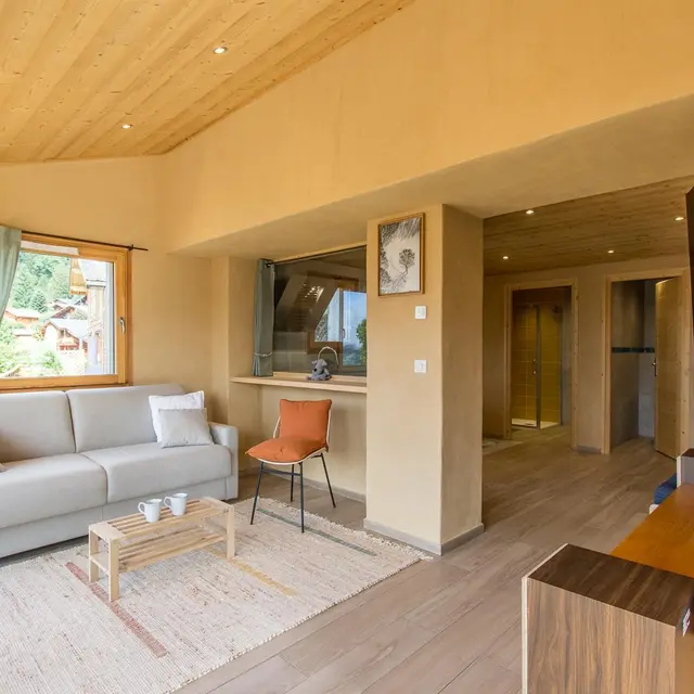Gîte indépendant de 40m2 aménagé sur le coteau ensoleillé de la vallée du Giffre, en contrebas du chalet des propriétaires.