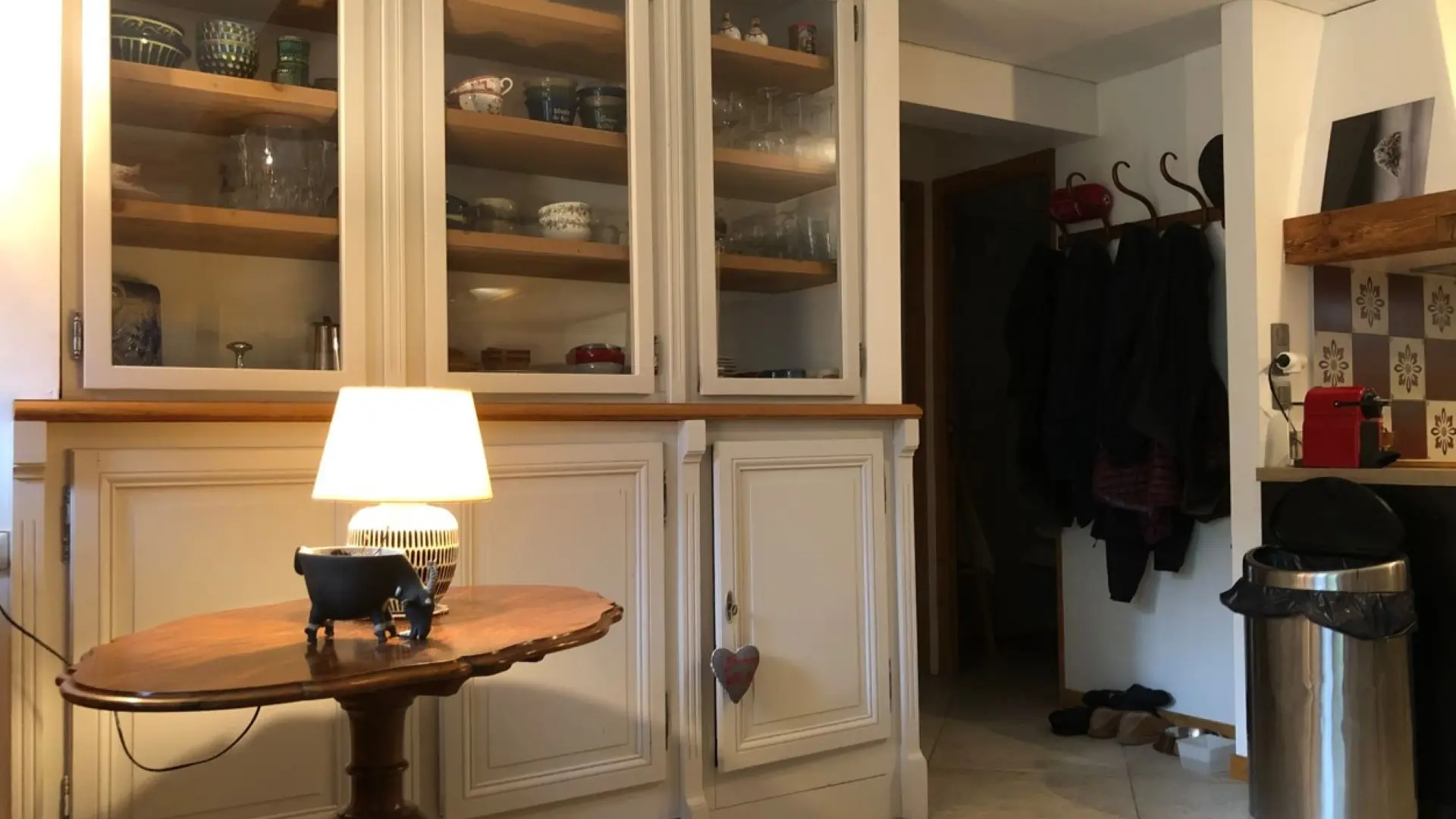 Buanderie avec lave linge, sèche linge et rangements. Possibilité de ranger ses skis également.