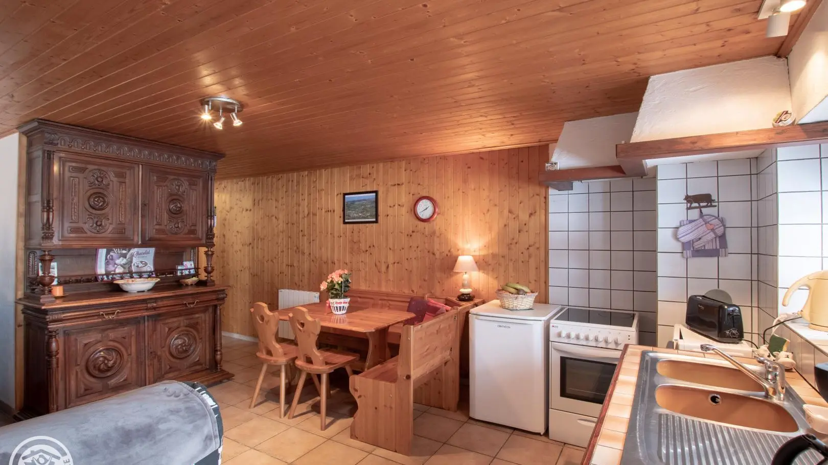 Entre Lac Léman et Portes du Soleil, au coeur du Pays de Gavot, ancienne ferme comprenant un gîte de 30 m2 au RdC et un logement des propriétaires. Coin-cuisine (micro-ondes) dans séjour (BZ 2 pers.), chambre (2 lits 1 pers.), salle d'eau/wc. Chauffage...
