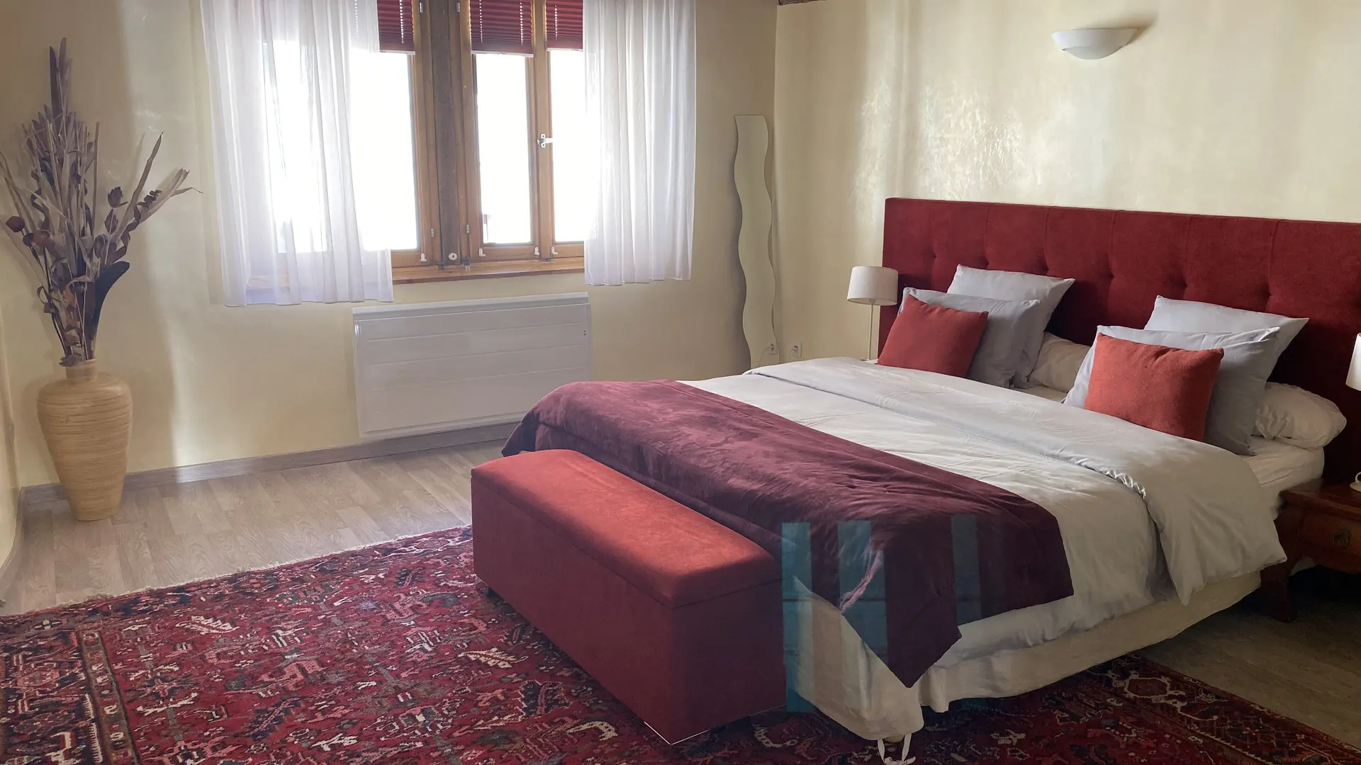 Une grande chambre à coucher de 25 m² avec un grand lit 180 x 200 transformable sur demande en deux lits jumeaux 90x200.