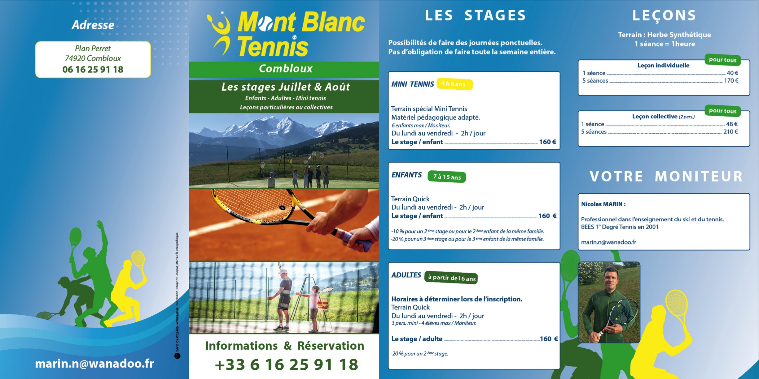 Nicolas Marin, professionnel dans l'enseignement du tennis vous propose des leçons individuelles ou collective (2pers) d'une heure ou plus sur Combloux.