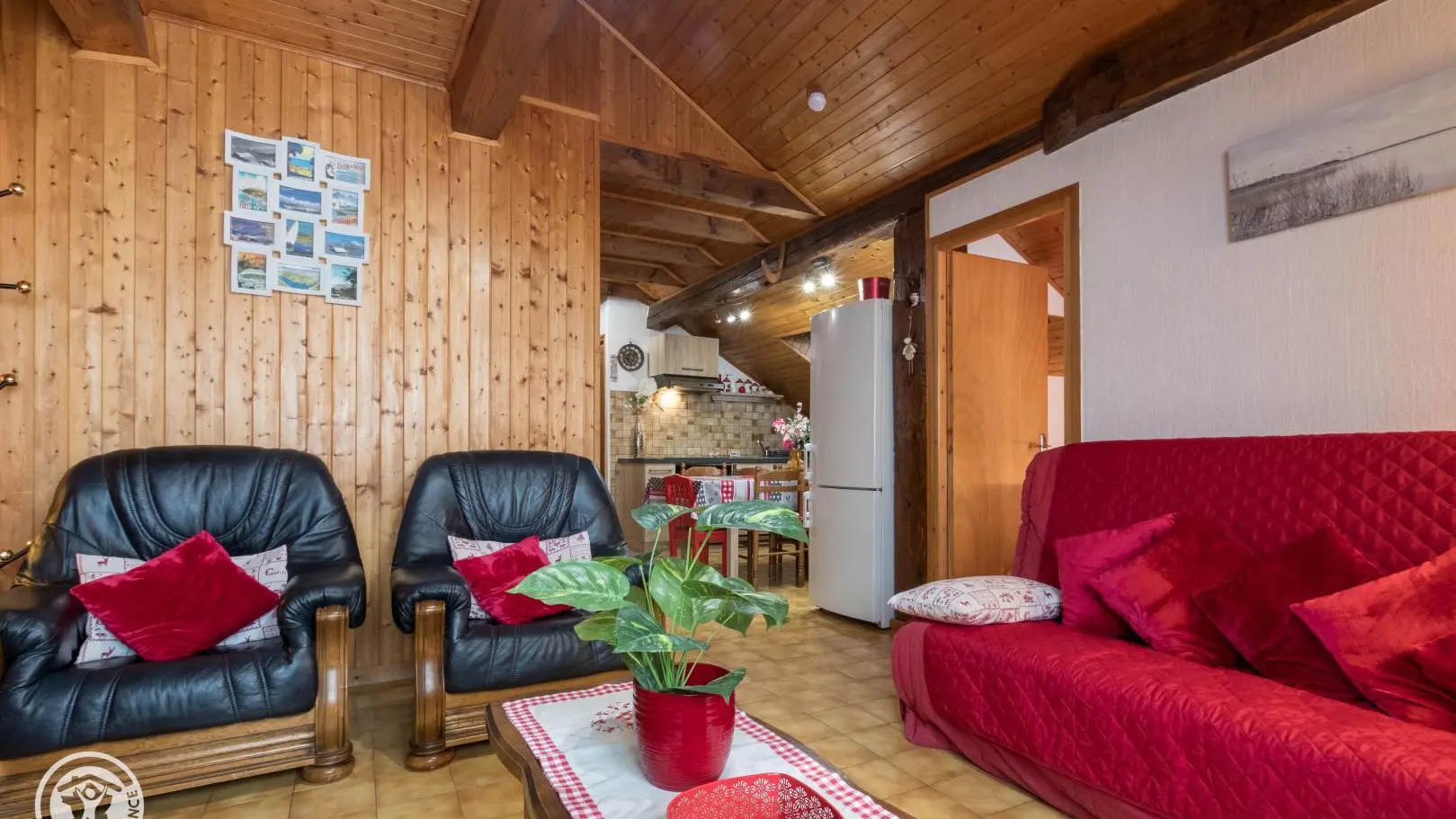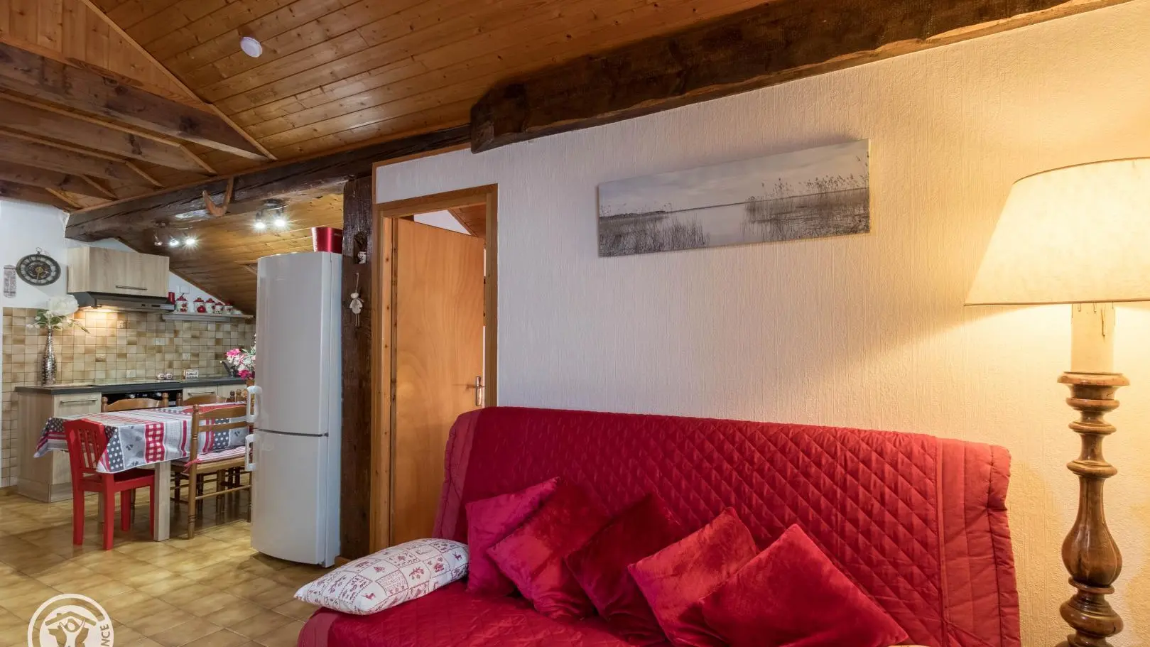 Dans le pays de Gavot, gîte (44m² + 24m² mansardés) offrant une vue dégagée sur le lac Léman et la côte Suisse aménagé au 3ème étage d'une maison comprenant un autre gite et deux logements des propriétaires. Coin cuisine ouvert sur le séjour, chambre (1 lit 140cm), salle d'eau (vasque sur meuble, doouche), WC indépendant, mezzanine basse en duplex avec 3 lits 90cm. Chauffage central. Buanderie avec lave-linge commun. Parking, cour. Terrain commun avec mobilier de jardin, barbecue, terrain de boules. Location de draps. Ski: Bernex 5km ou Thollon-les-Mémises 6km. Thônon 17km et Evian-les-Bains 11km : Lac Léman, activités sportives, culturelles, thermes, golf. Lac de la Beunaz 1.2km (pêche, piscine). Nombreuses activités à proximité : promenades, randos, rafting, escalade, via ferrata, tennis, VTT, piscine... 2 animaux acceptés sur demande