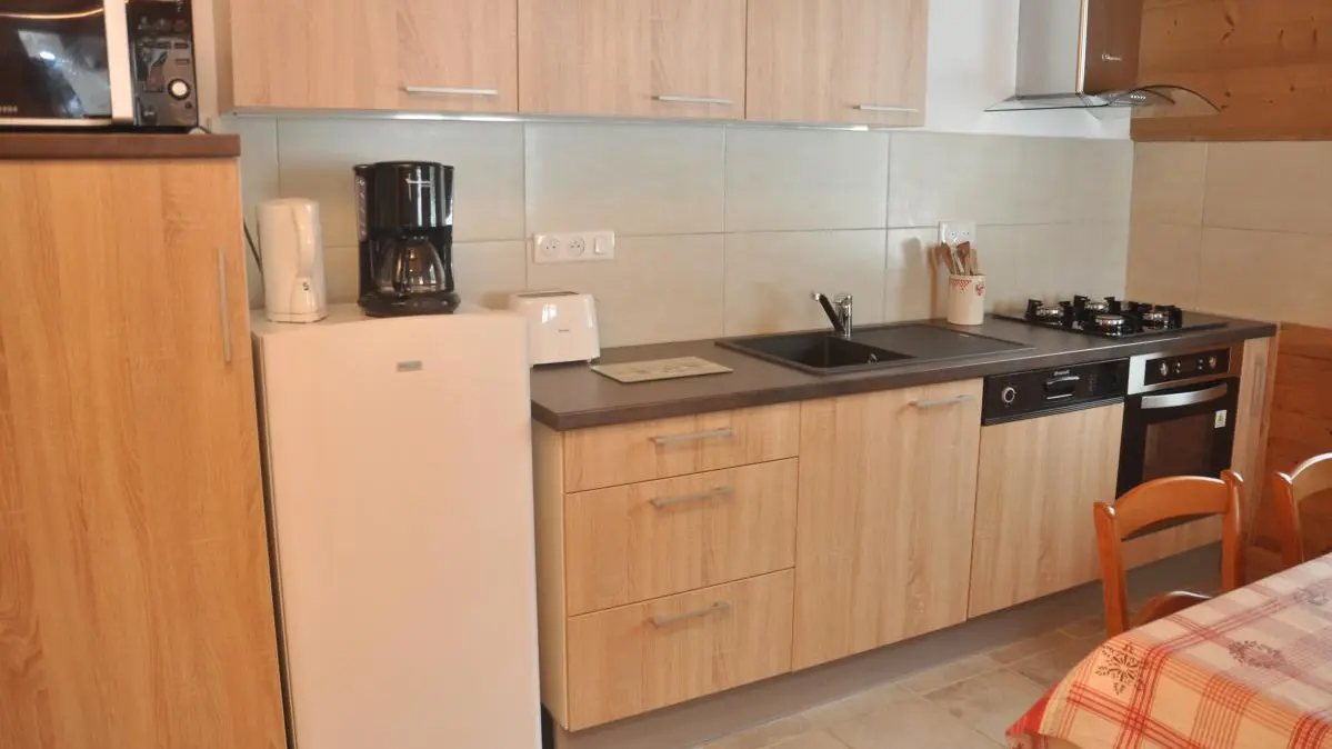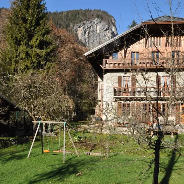 A proximité du centre de Samoëns, gîte de 61m2 aménagé au 1er niveau d'une ancienne ferme rénovée comprenant également 2 autres gîtes et le logement des propriétaires (au rez-de-chaussée). Cuisine ouverte sur séjour, Chambre 1 (1 lit 140), Chambre 2 (1 lit 140, 2 lits 90), balcon plein sud, salle de bains, WC, lave-linge et sèche-linge communs, chauffage central, terrasse et terrain en commun avec salon de jardin, barbecue à gaz. Samoëns, station verte, domaine du Grand Massif, départ de randonnées à 0,8 km, navette gratuite à 150 m. Location de draps.