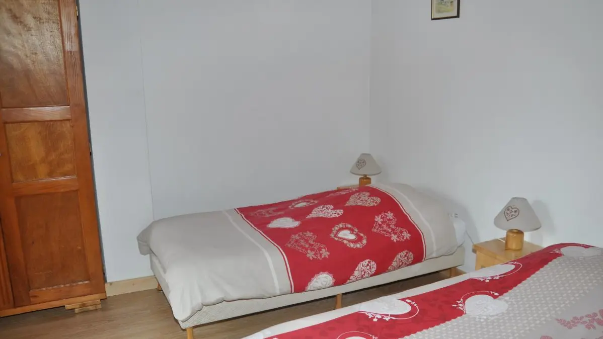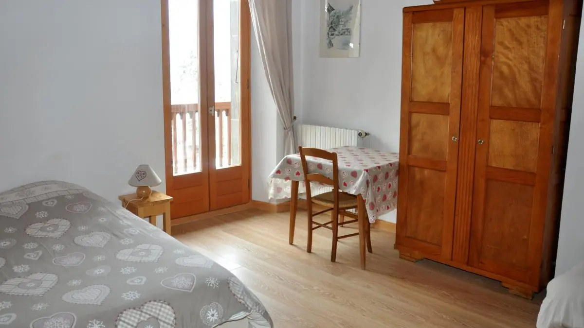A proximité du centre de SAMOENS, gîte ds la maison du propriétaire au 1er étage : cuisine, séjour, Ch1 (1 lit 140), Ch2 (1 lit 140, 2 lits 90), balcon plein sud, bains, wc, lave-linge et sèche-linge commmuns, chauffage central, terrasse et terrain en ...