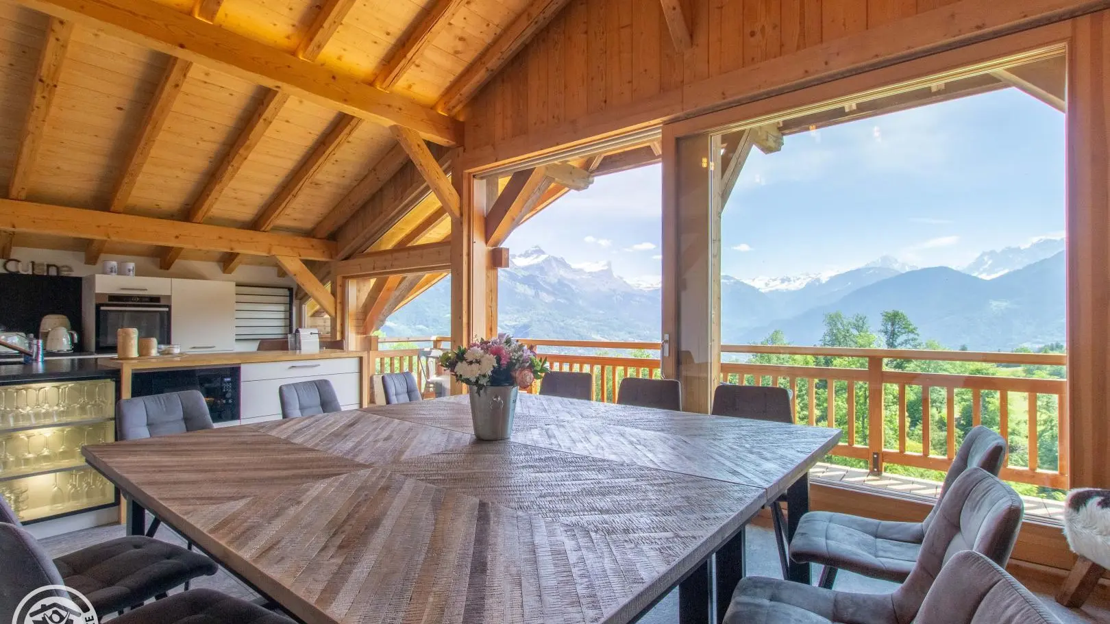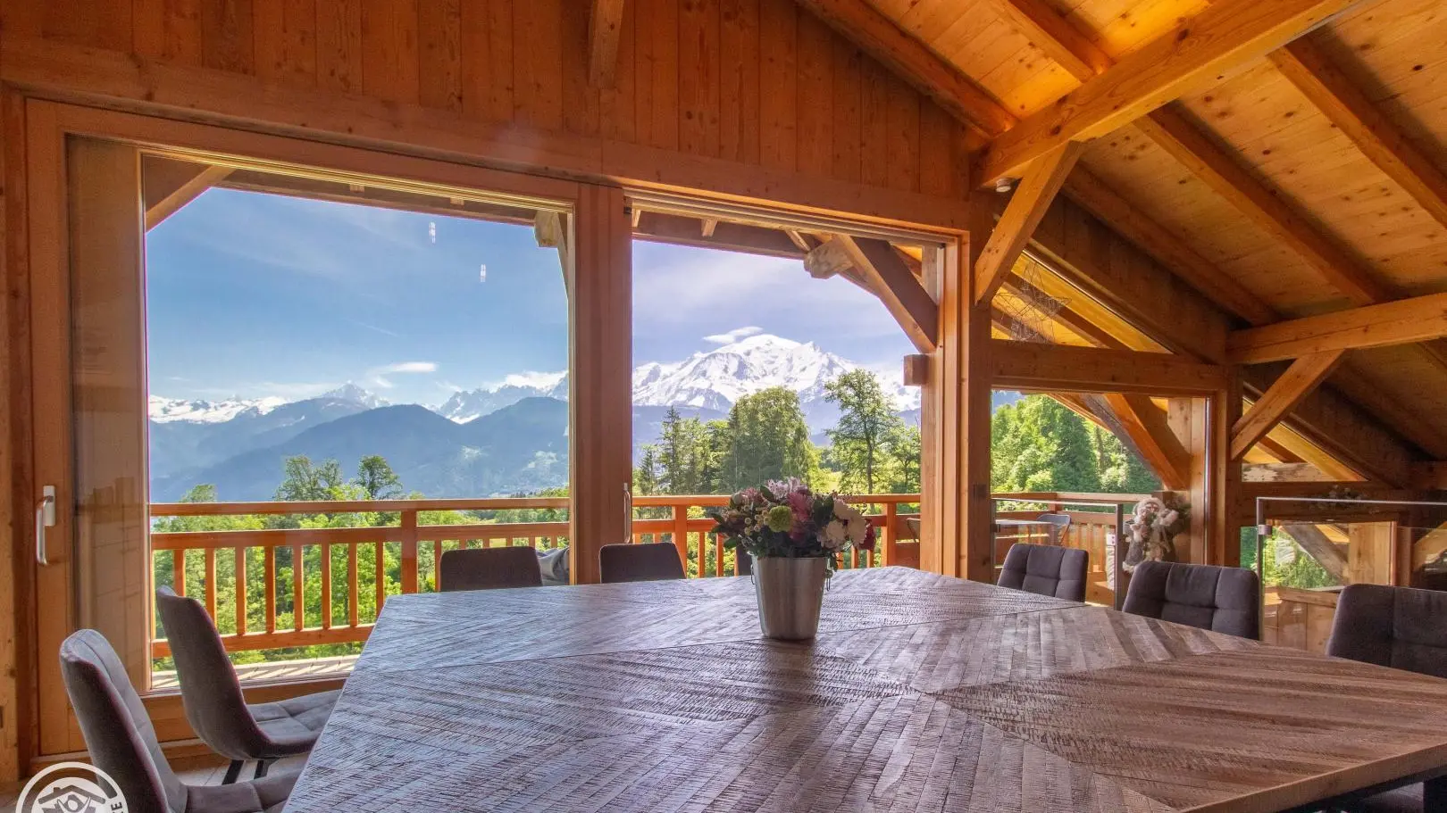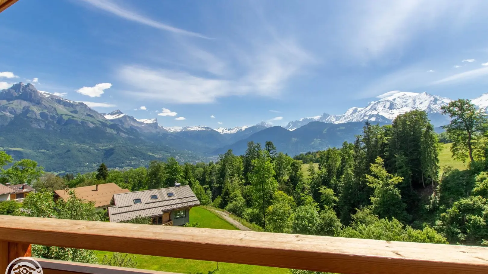 Balcon au 2ème étage face au Mont-Blanc avec 2 petites tables. Internet wifi. Chauffage au sol (électrique).