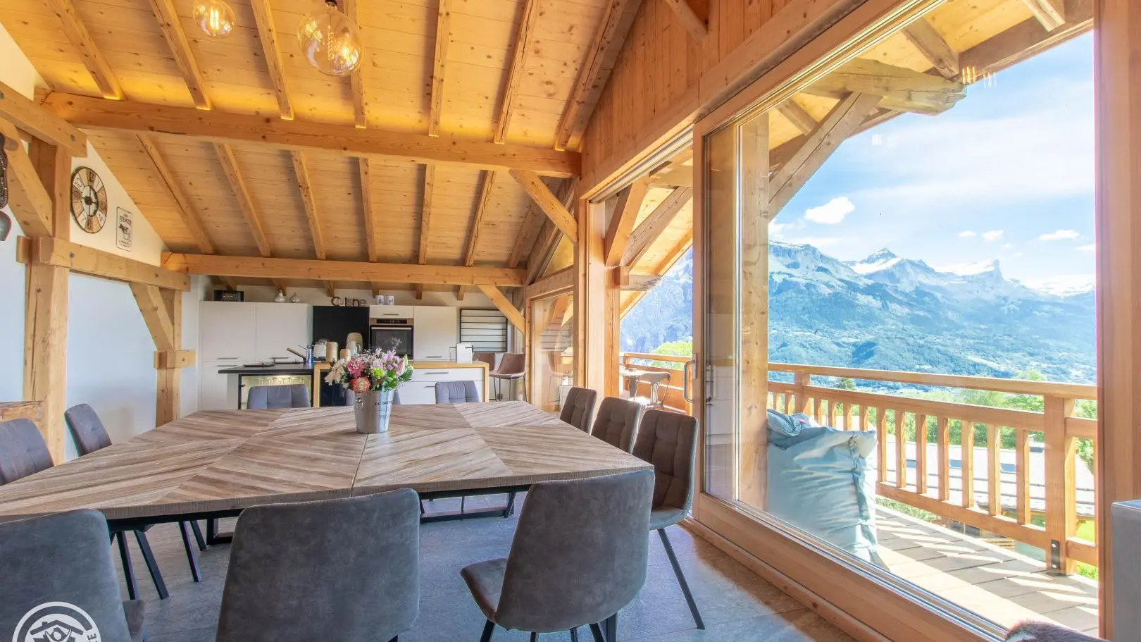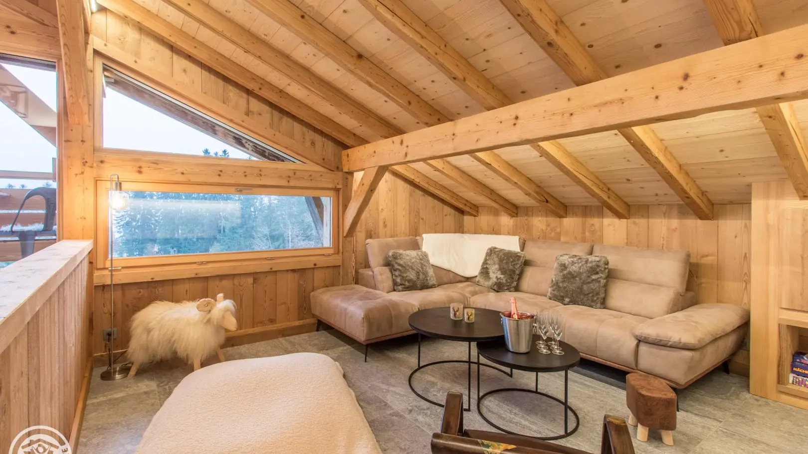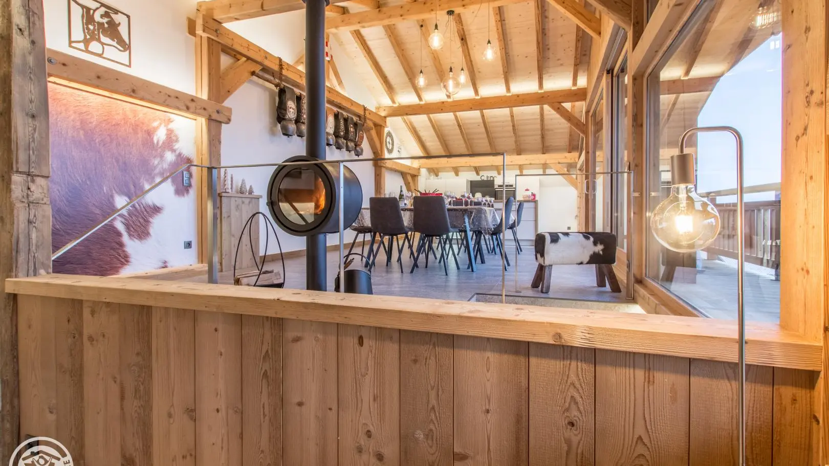Au pays du Mont-Blanc : gîte de 150m2 aménagé en duplex au 1er et 2ème étage d'une vaste ferme en activité de type chalet comprenant également le logement des propriétaires.