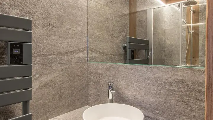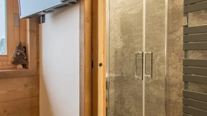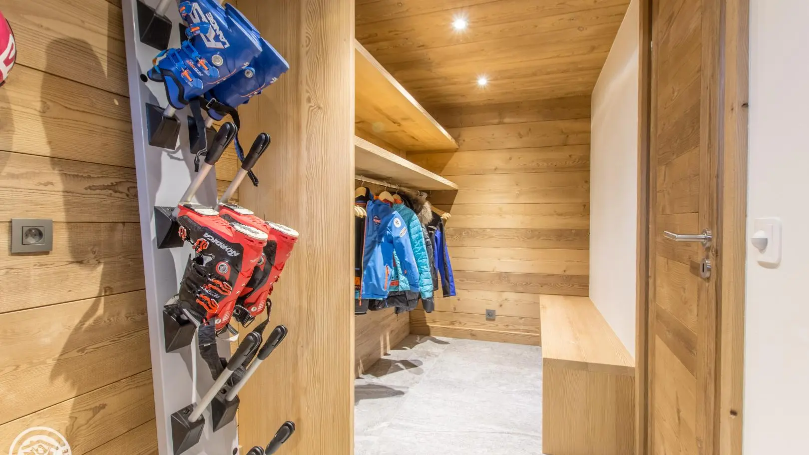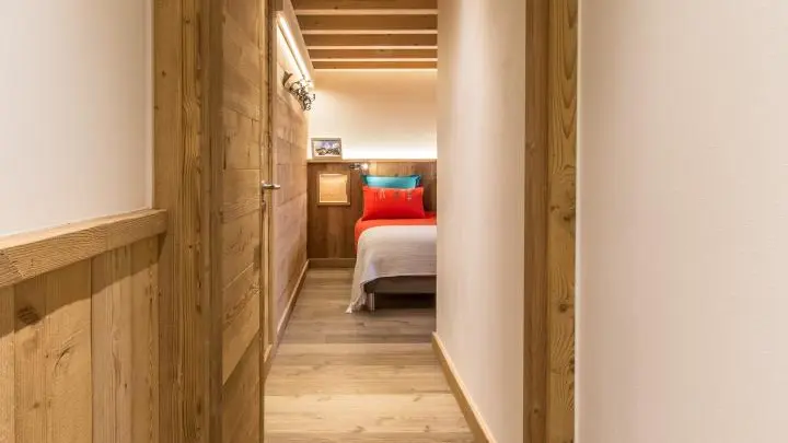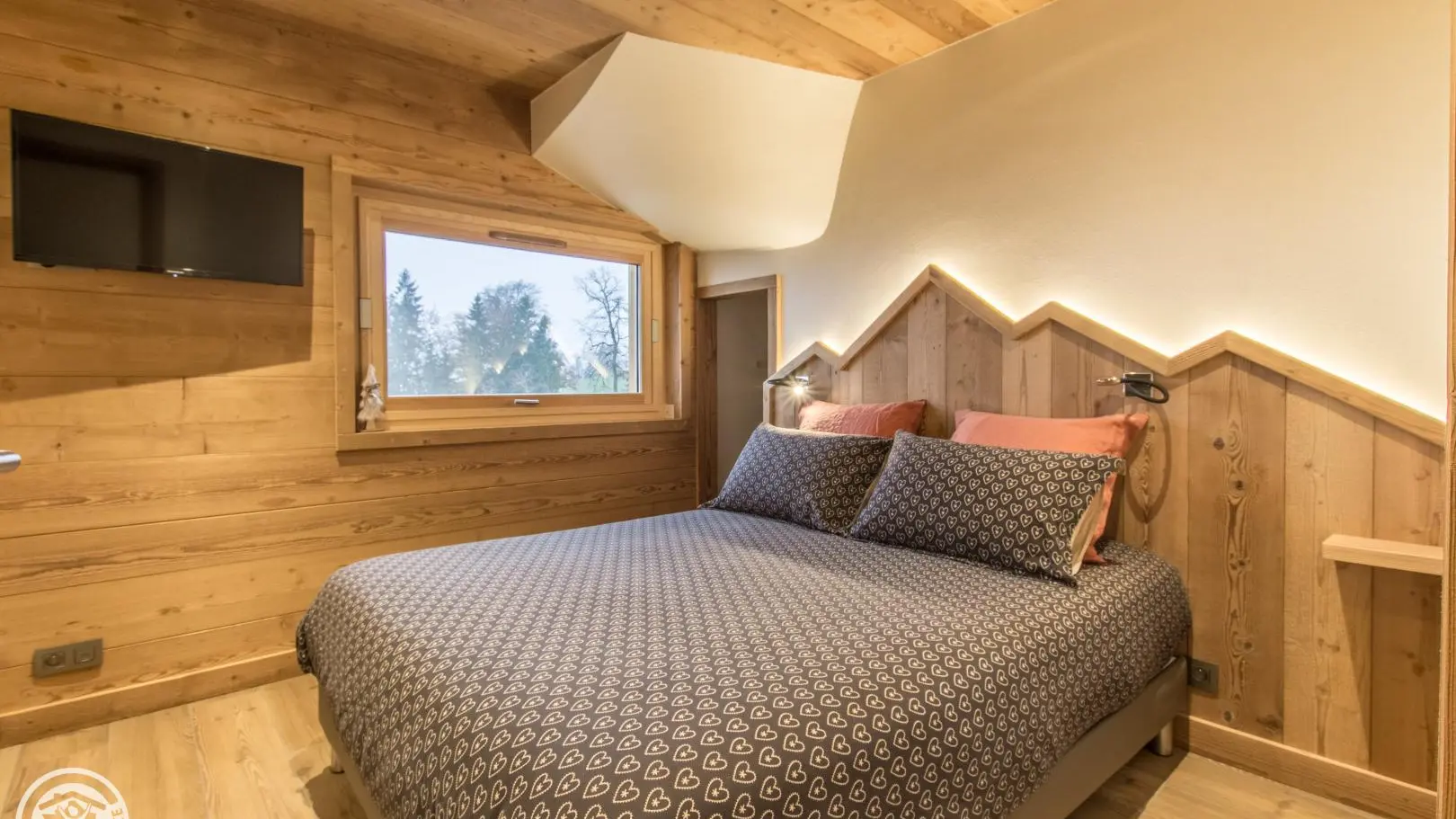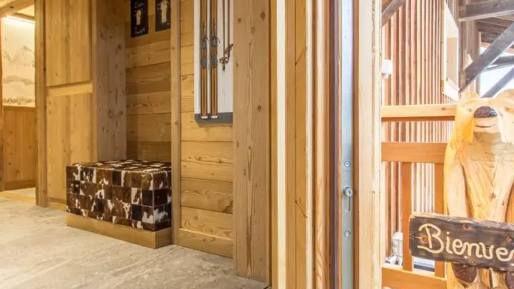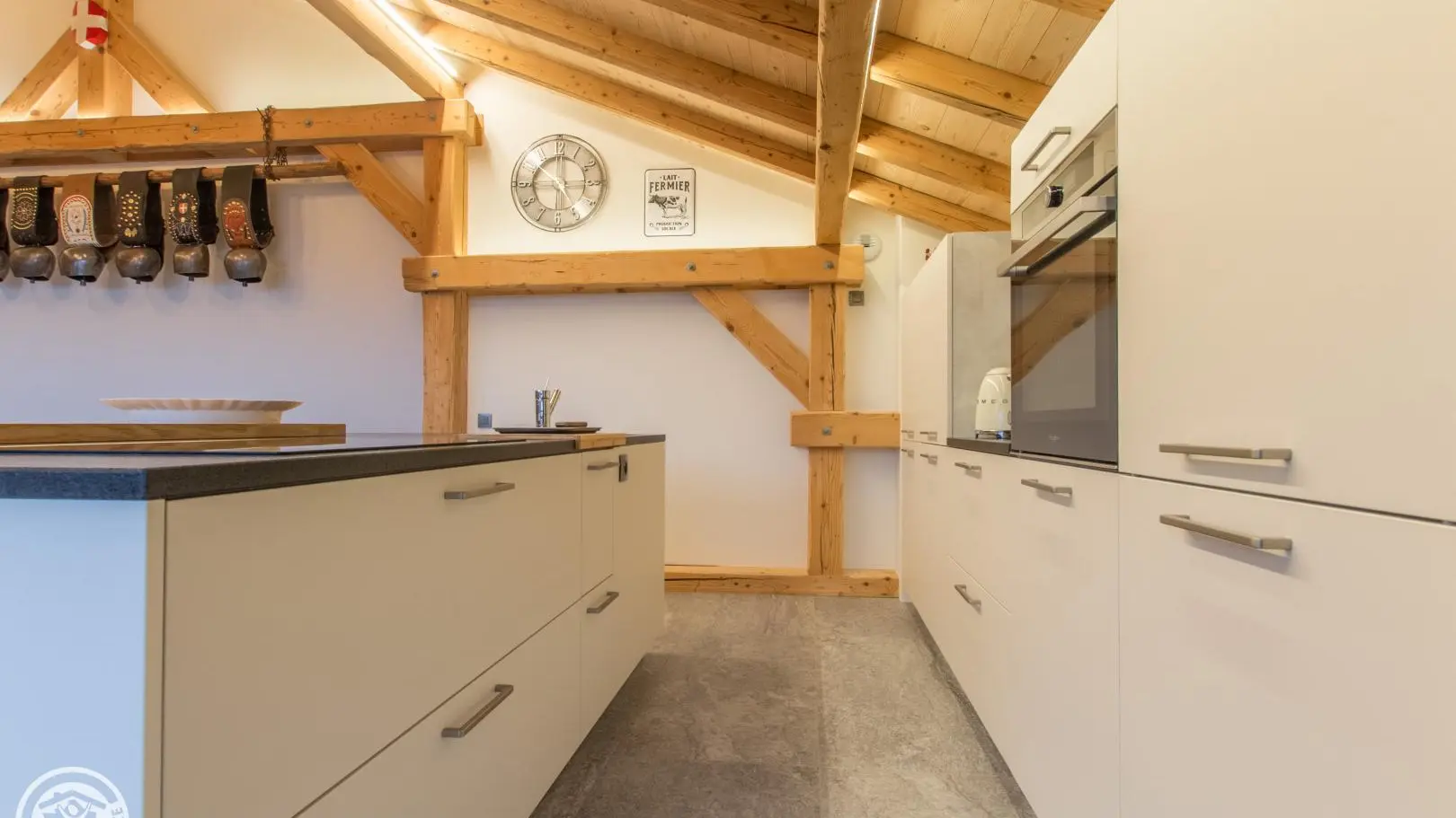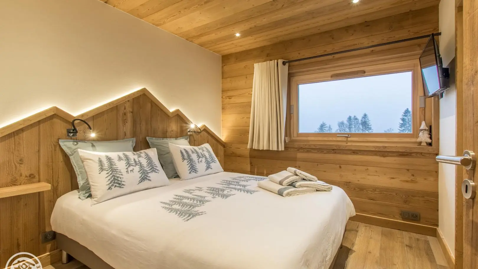 Au 1er: local skiroom, buanderie, chambre 1 (2 lits 90x200cm jumelables, 2 lits 90x200cm superposés, Tv), chambre 2 (1 lit 160x200cm, Tv), chambre 3 (1 lit 160x200cm, Tv), chambre 4 (1 lit 160x200cm, Tv + mezzanine avec accès par escalier raide : 2 lits 90x200cm superposés + 2 lits d'appoints 90cm). Au 2ème : pièce de vie avec coin cuisine intégré ouvert sur espace repas et coin salon (poêle à bois, Tv, canapé).