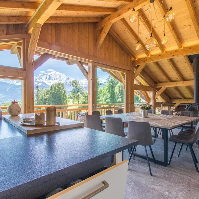 Centre village de Combloux à 1,8km : commerces, et plan d'eau biotope (baignade estivale face au Mont-Blanc + espace bien-être). Megève à 7km : casino, golf, piscine, patinoire...