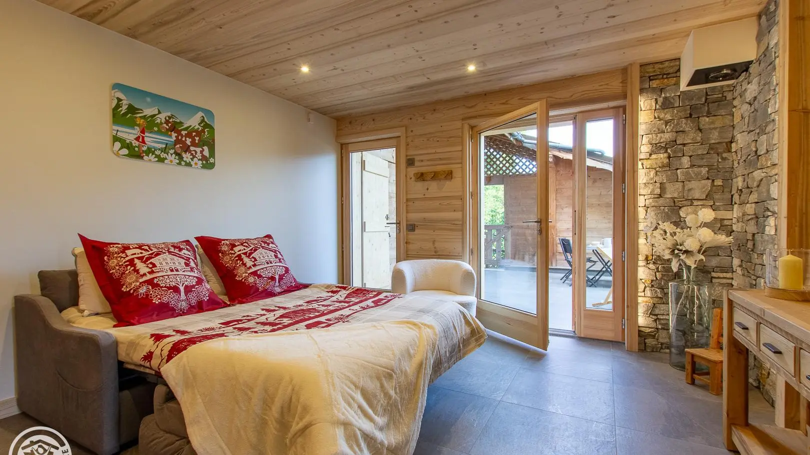 Les draps et le linge de toilette sont inclus (lit fait à votre arrivée). Internet wifi. Grand local privatif pour vos skis ou vélos. Stationnement libre dans la cour de la ferme. Vaste terrasse privative face aux sommets alpins (Mont-Blanc, Fiz), avec mobilier de jardin, plancha électrique et transats. Les propriétaires qui sont agriculteurs exploitants seront ravis de vous faire partager leur travail (ferme sur place avec vaches laitières de race Abondance).