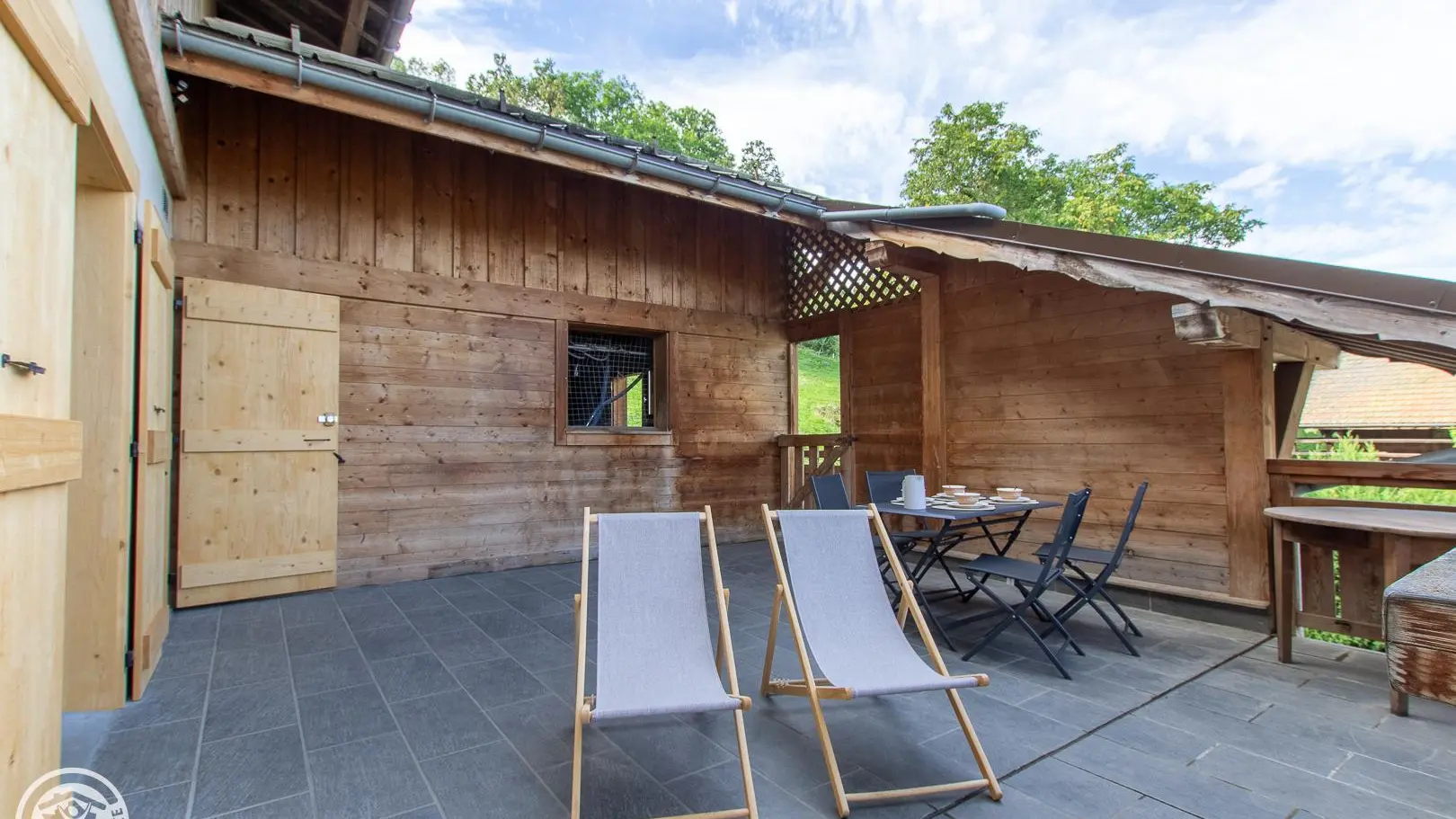Gîte de 46m2 aménagé au 1er étage d'une vaste ferme en activité comprenant également un autre gîte, ainsi que le logement des propriétaires.