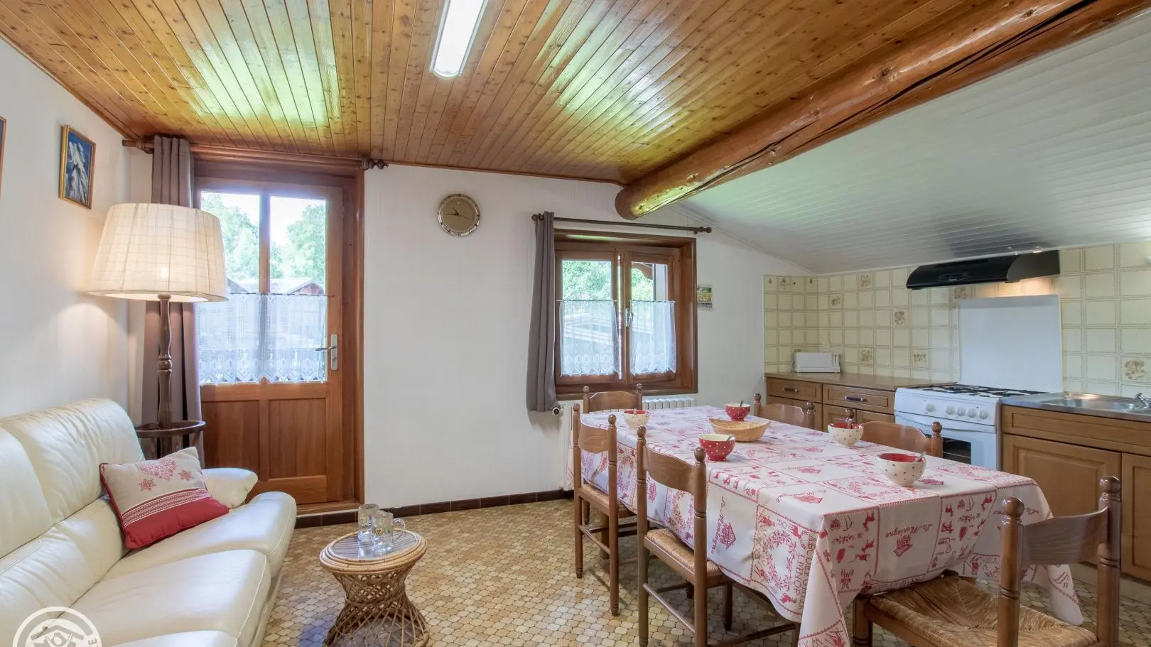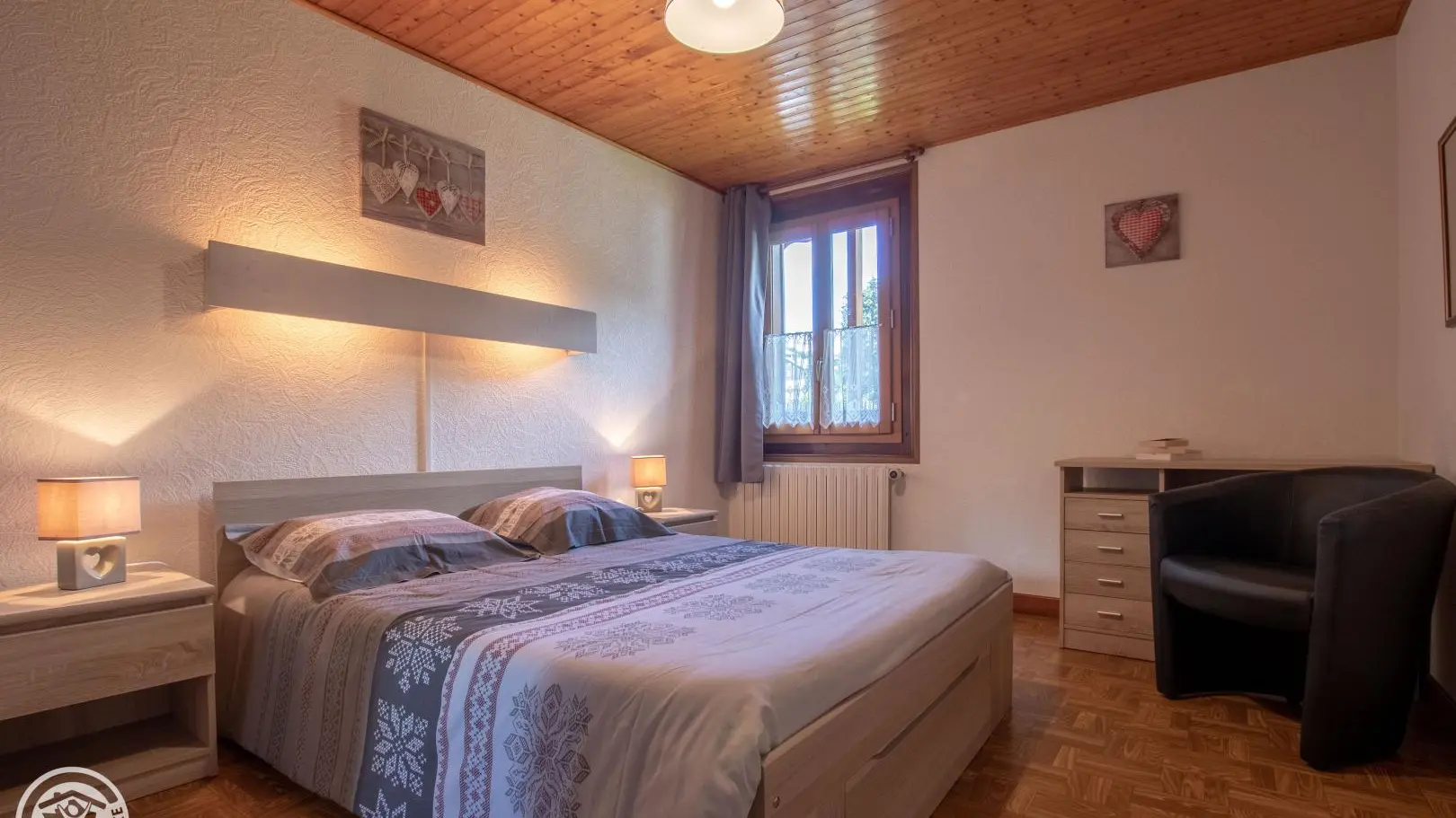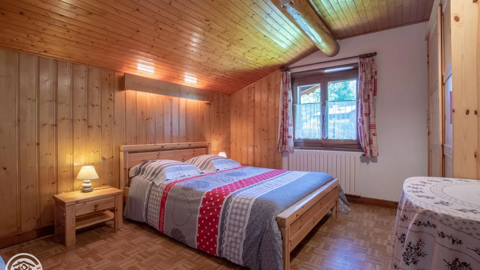 Gîte de 70m2 aménagé au 2ème étage du chalet des propriétaires, comprenant également un 2nd gîte. Cuisine-séjour (TV), 3 chambres (2 lits 2 personnes, 3 lits 1 personne). Salle de bains, wc. Lave et seche-linge communs (buanderie). Chauffage central. Balcon sud avec vue montagnes. Parking, pelouse, salon de jardin et jeux, table de ping-pong, barbecue. Terrain commun. Draps fournis. Station de ski: Les Contamines 2km. Navette gratuite sur place en été et en hiver. Circuit du baroque (chapelles et églises classées), thermes 12km, parc de loisirs 4km. Piscine d'été 6km. Station thermale 10km. Gare et autoroute à 15min. 1 seul animal accepté.