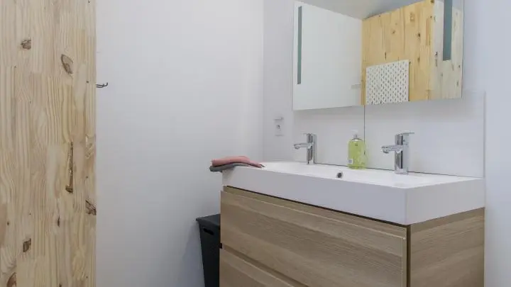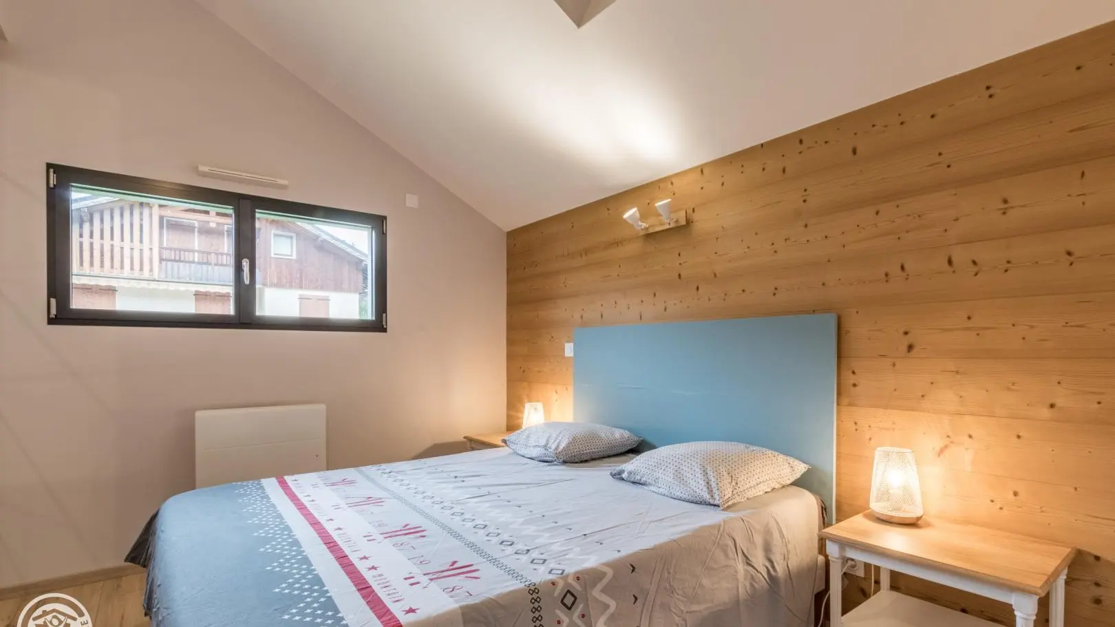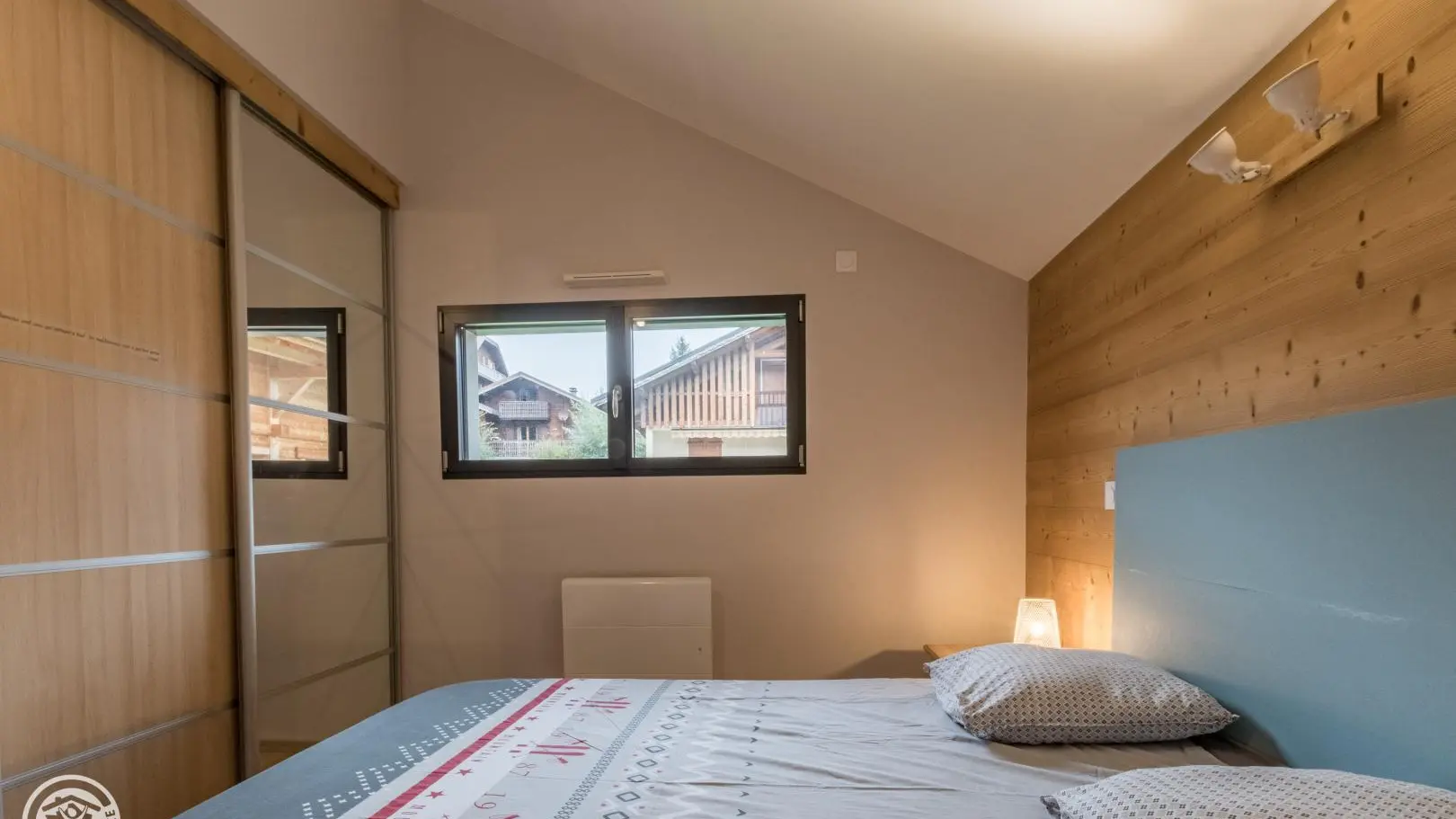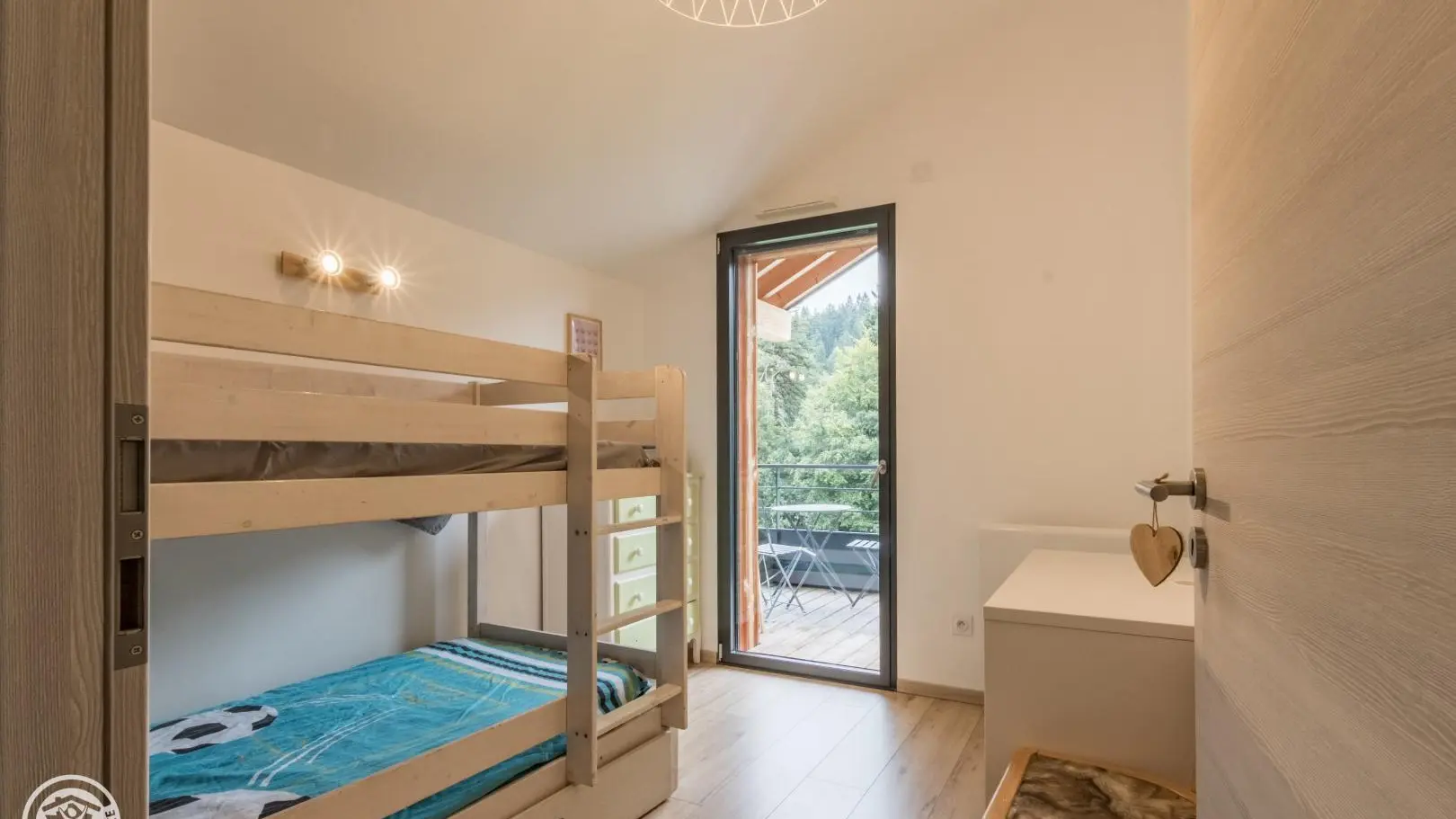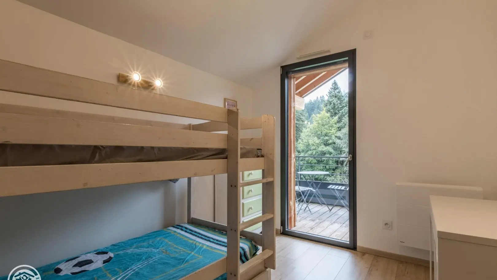 Appartement de 70m² (+ 16m² mansardés) aménagé au 2ème étage d'un grand chalet comprenant 4 autres logements. Entrée indépendante. Petit hall d'entrée, belle pièce à vivre avec cuisine ouverte sur le séjour (table repas, lave-linge, télévision, canapé d'angle convertible type rapido avec couchage 140), baie vitrée donnant accès au balcon orienté sud. Chambre 1 (1 lit 160x200cm), chambre 2 (2 lits 90x190 superposés, accès balcon), salle d'eau (douche), wc indépendant.
