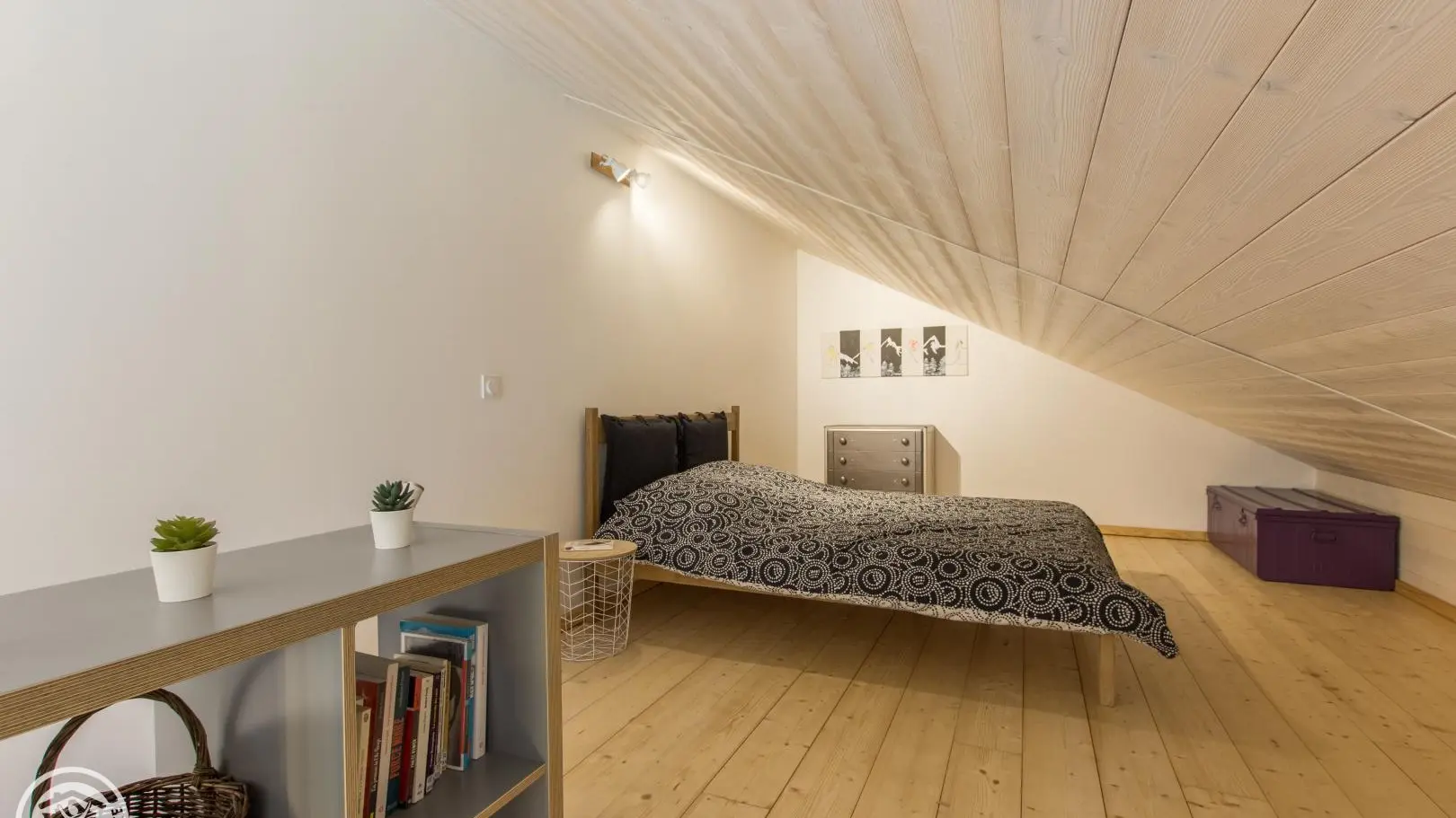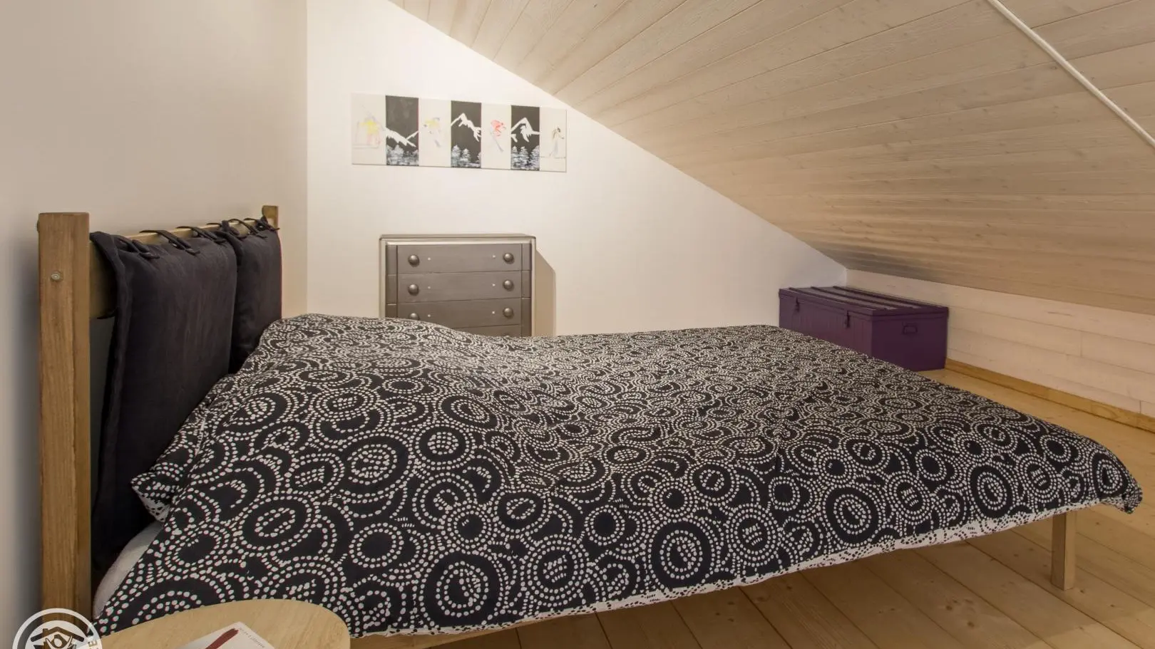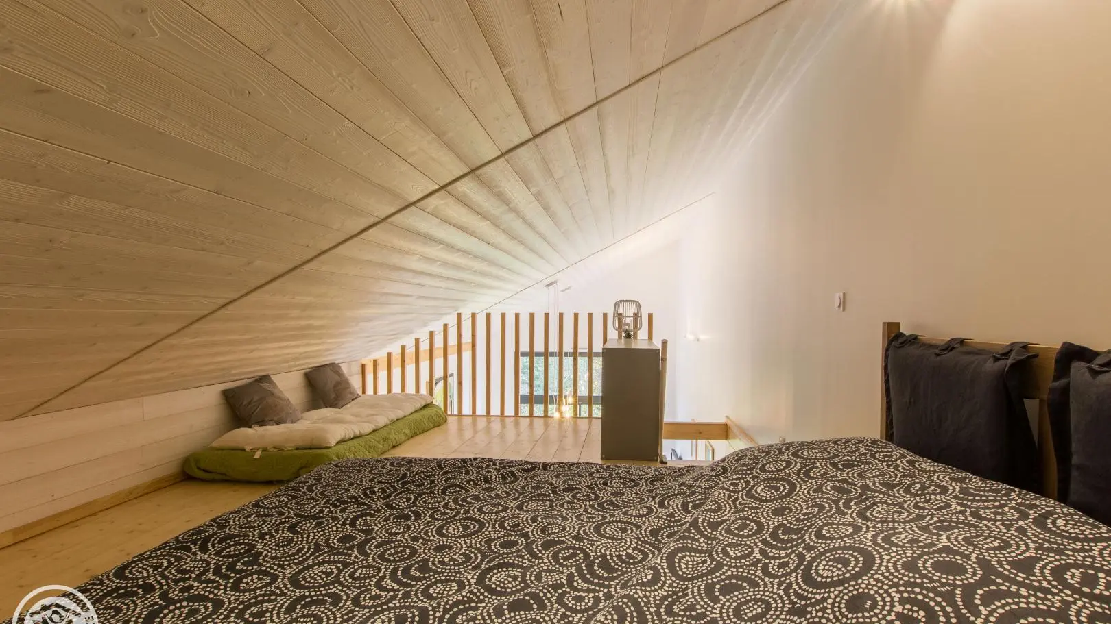 Au dessus du séjour, mezzanine mansardée avec 1 lit 160x200cm.