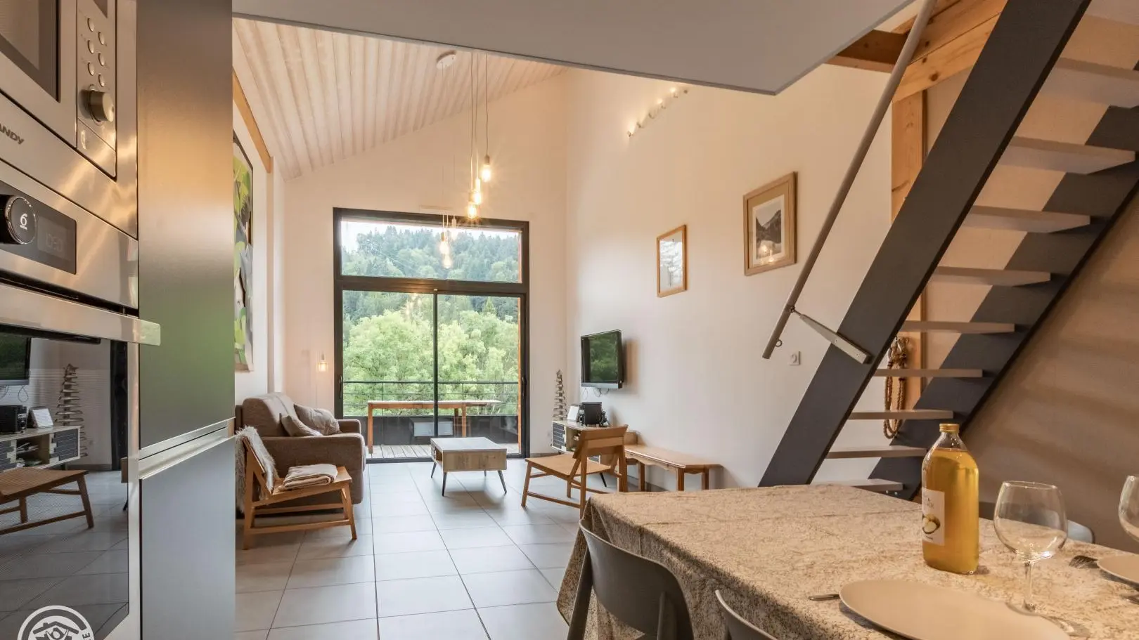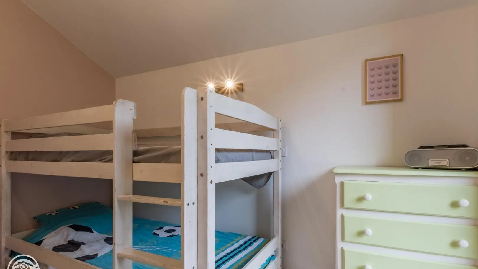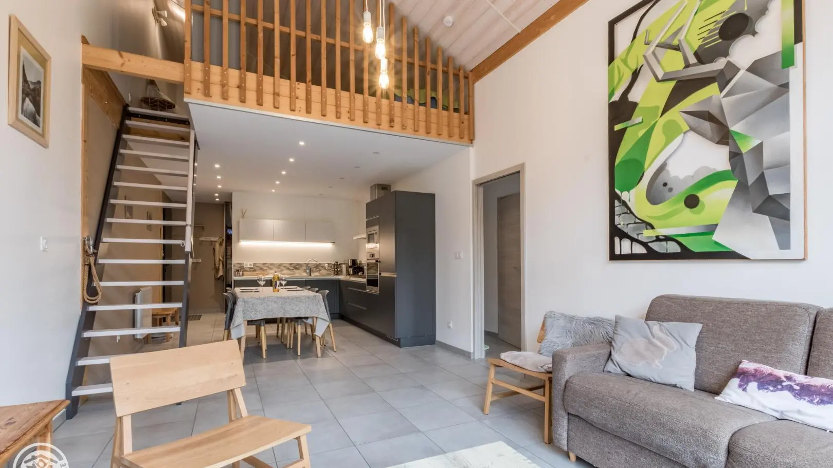 Au dessus du séjour, mezzanine mansardée avec 1 lit 160x200cm.