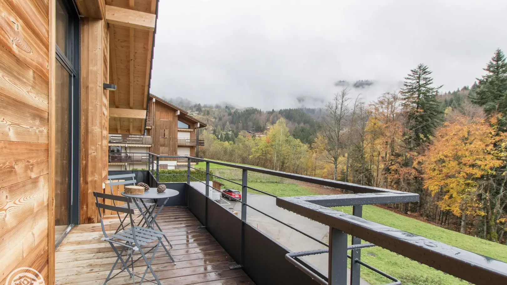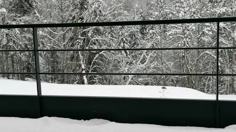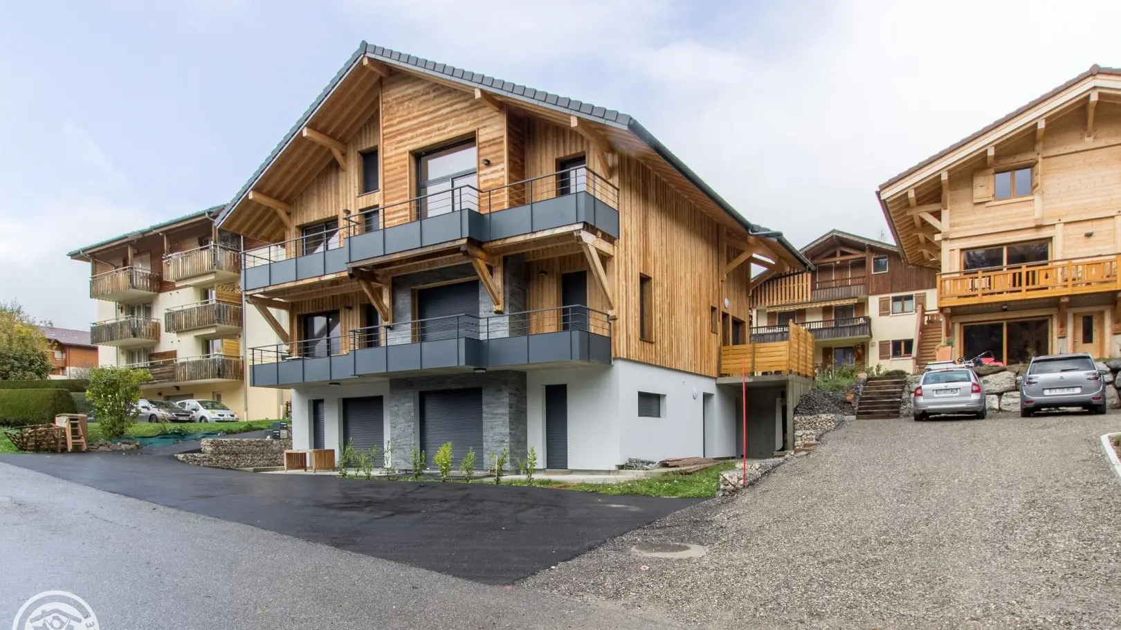 Parking privatif devant le chalet. Prise pour recharge voitures électriques.
