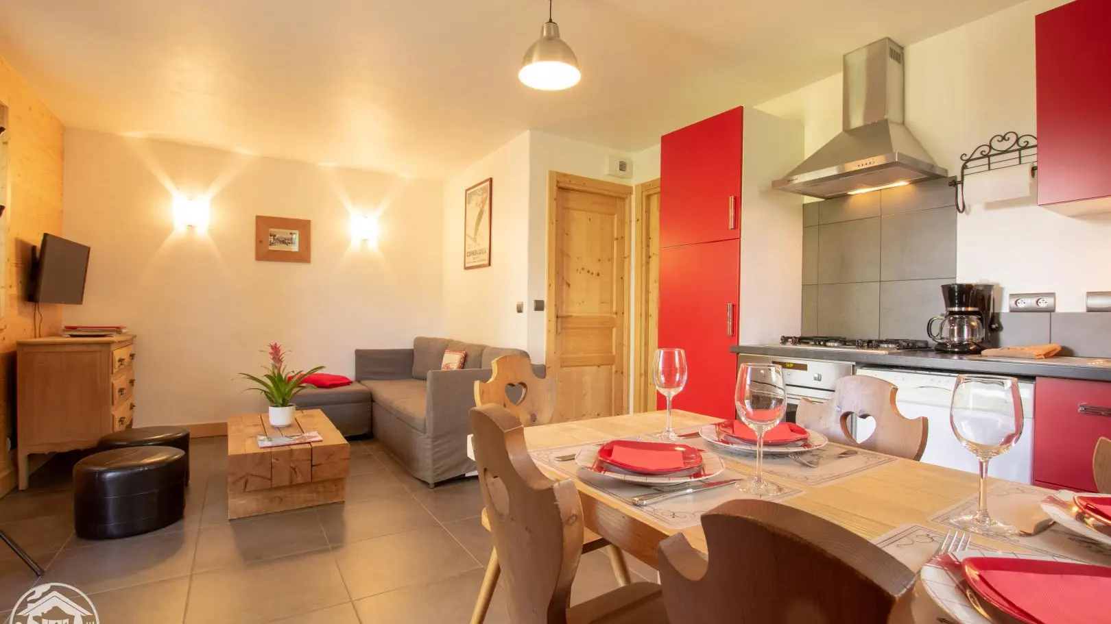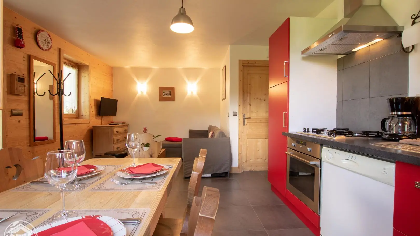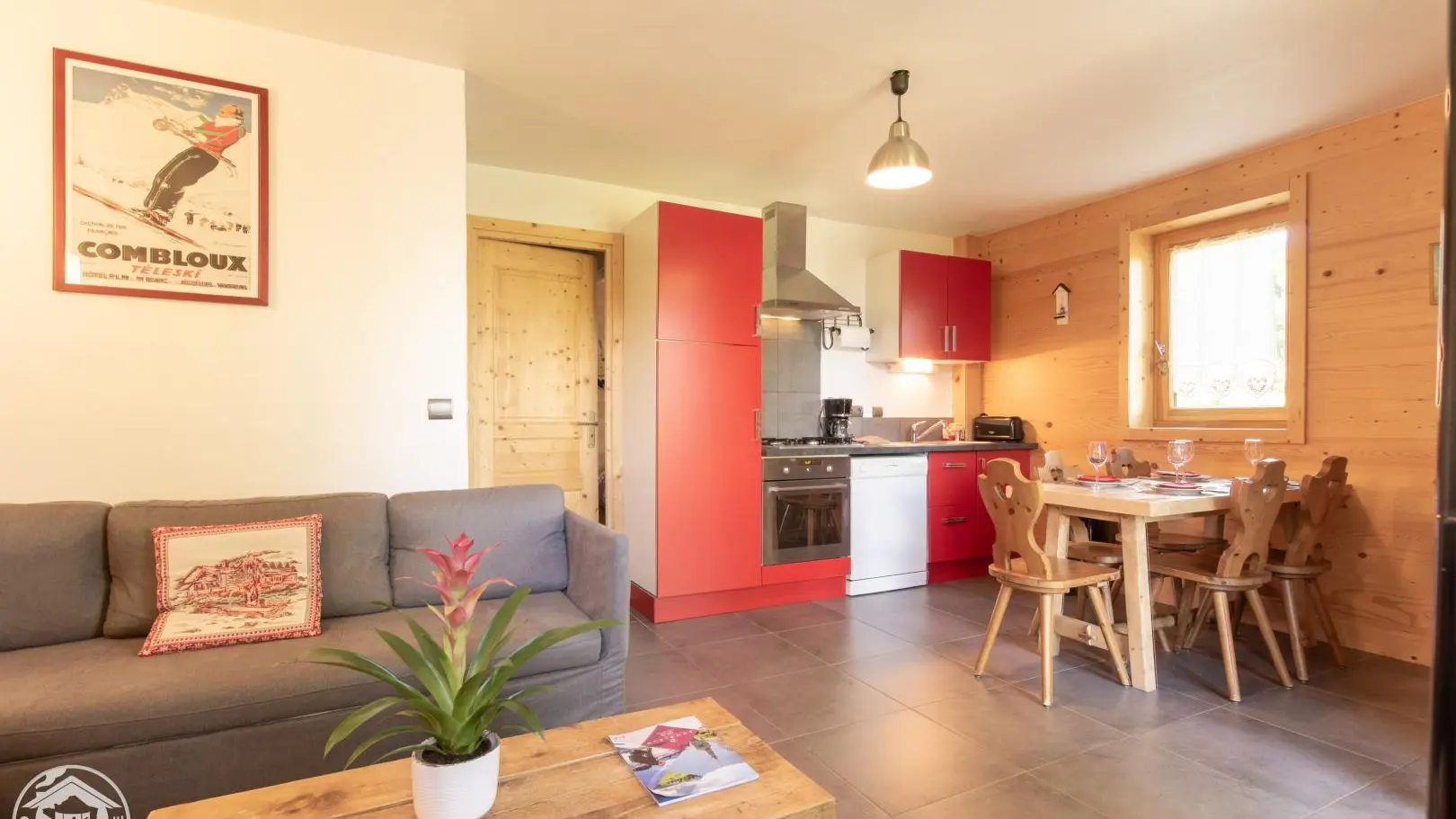 Terrasse bois privative avec mobilier de jardin, transats, barbecue électrique. Centre village de Combloux à 2km (commerces, animations). Domaine skiable de Combloux 1,8km, Megève/St-Gervais 2,1km (télécabine de la Princesse). En été, baignade au plan d'eau biotope de Combloux à 2km. Megève (Palais des sports, piscine) à 4km, Sallanches à 7km, Thermes de Saint-Gervais à 13km. Chamonix à 40 minutes en voiture environ (31km).