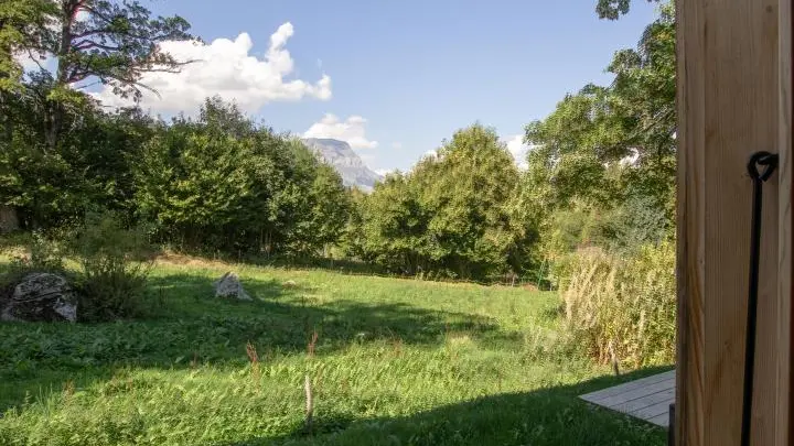 Gîte de 32m2 aménagé en rez-de jardin d'un chalet comprenant également un autre gîte (mitoyen), ainsi que le logement du propriétaire (à l'étage). Chacun dispose de sa propre entrée privative. Entrée indépendante de plain-pied (accès par petit chemin plat de 10 mètres). Cuisine intégrée ouverte sur séjour (canapé convertible de type rapido offrant un couchage d'appoint confortable 140x190cm, Tv).