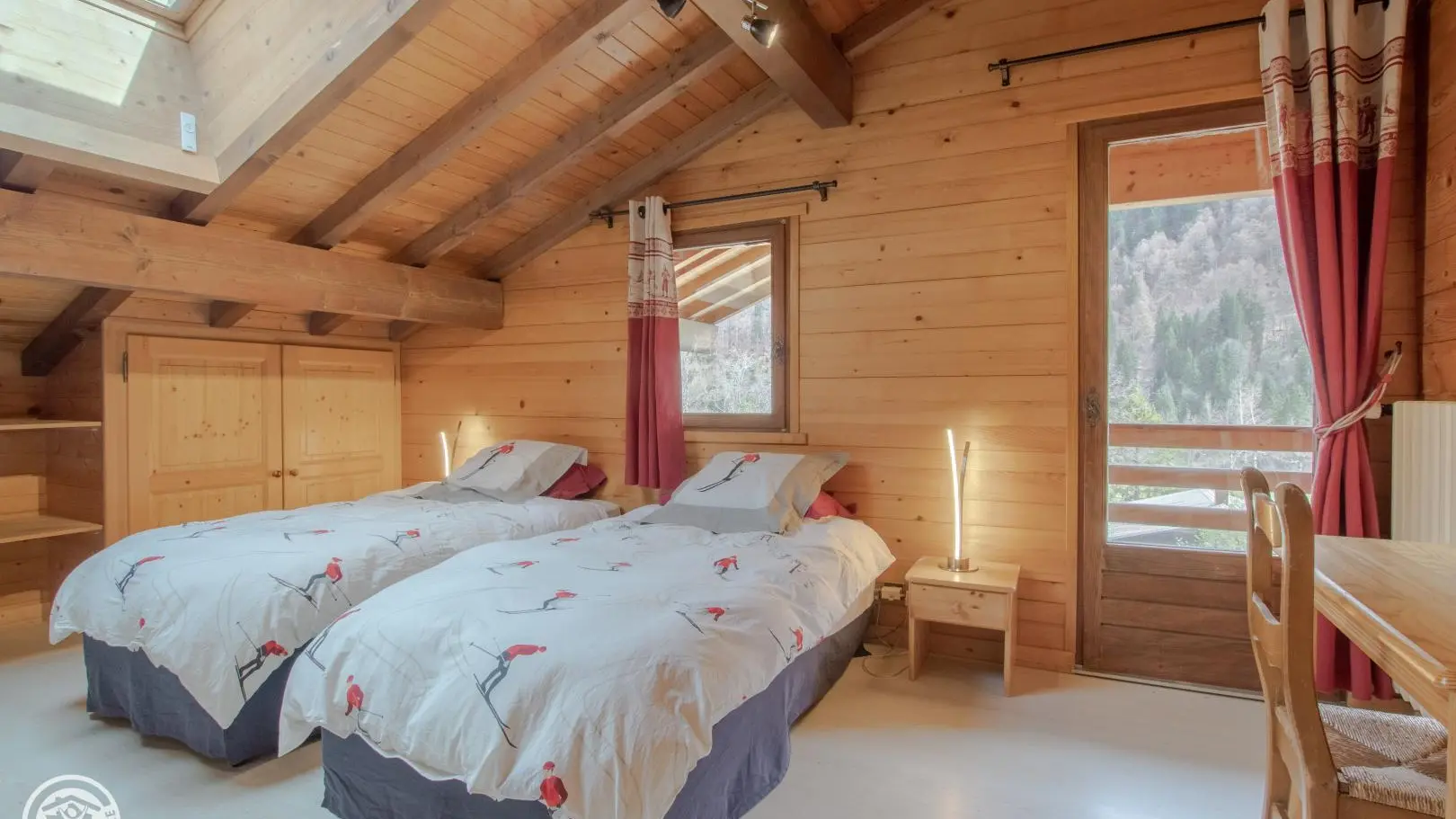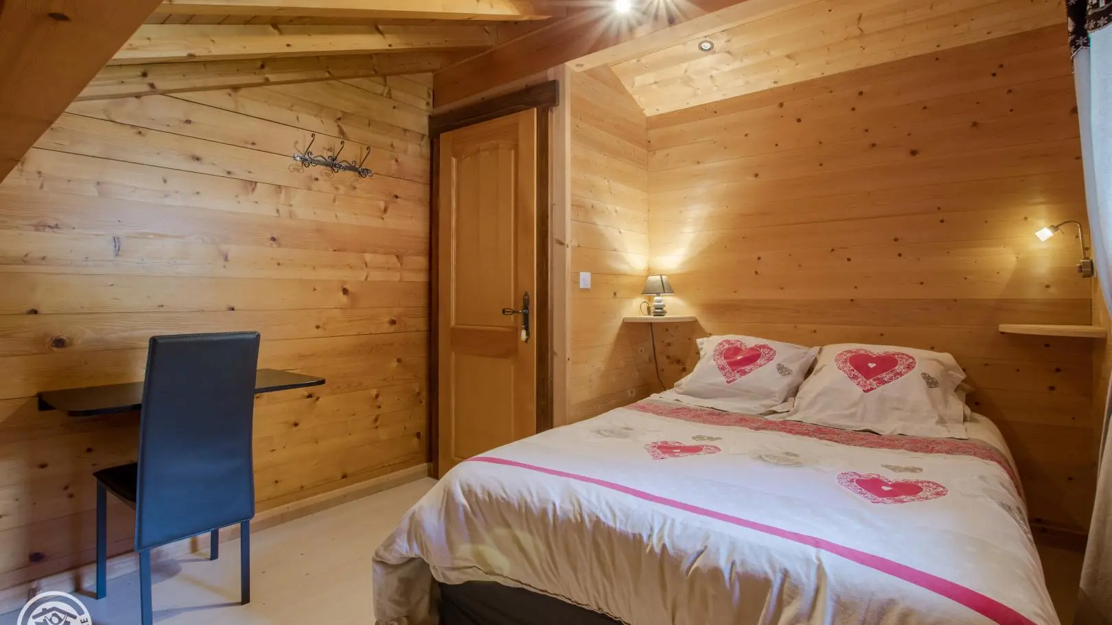 A l'étage : Chambre 2 (2 lits 90cm jumelables, 1 lit 90cm), Chambre 3 (1 lit 140), Chambre 4 (1 lit 90), Chambre 5 (1 lit 160 cm), salle d'eau, wc indépendant. Chauffage central. Terrasse, balcons, terrain, local technique /skis/vélos. Les draps sont fournis. Domaine skiable Grand-Bornand/Chinaillon à 4 km. Promenades au départ du gîte. Navette gratuite à 100 m. Base de loisirs, centre du village et animations à 5 km. Proximité des pistes de ski de fond (500m). Gîte non fumeur.